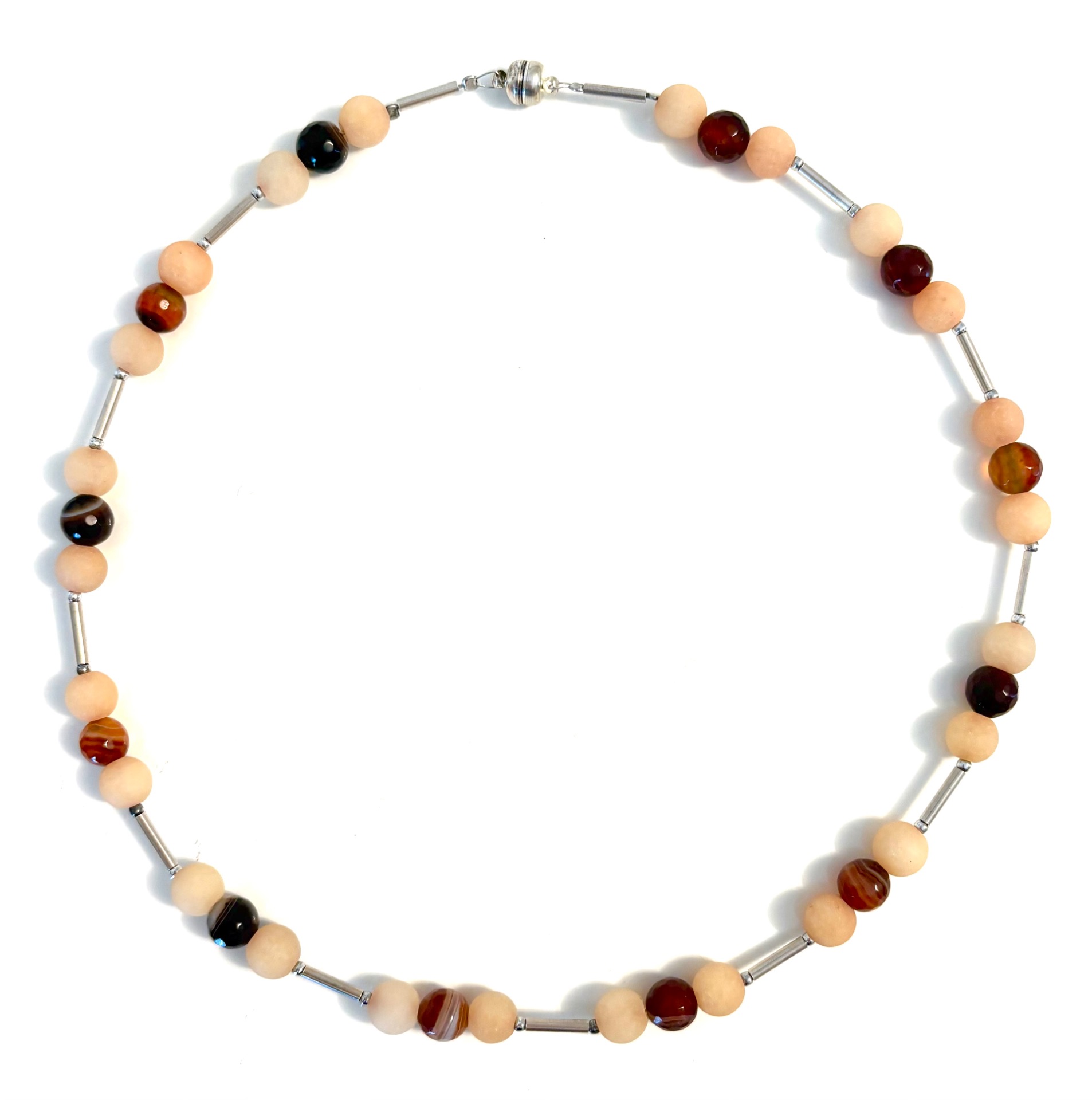 Achat-Karneol - Kette mit Silberelementen, Kugel-Magnetschließe