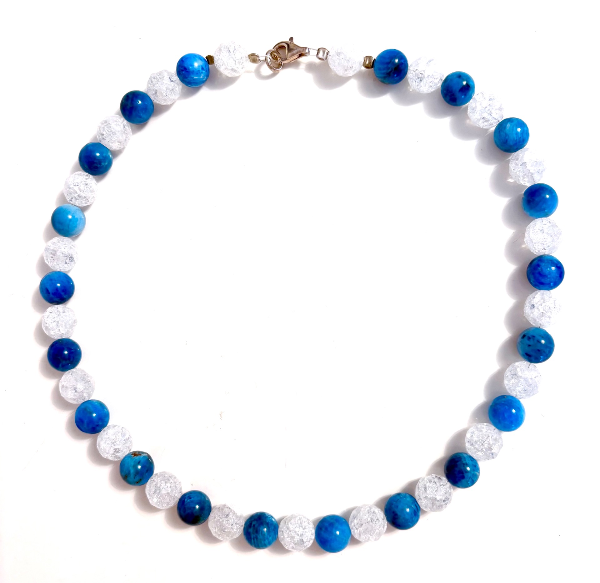 Apatit Kette mit Bergkristall, mit Karabiner-Schließe