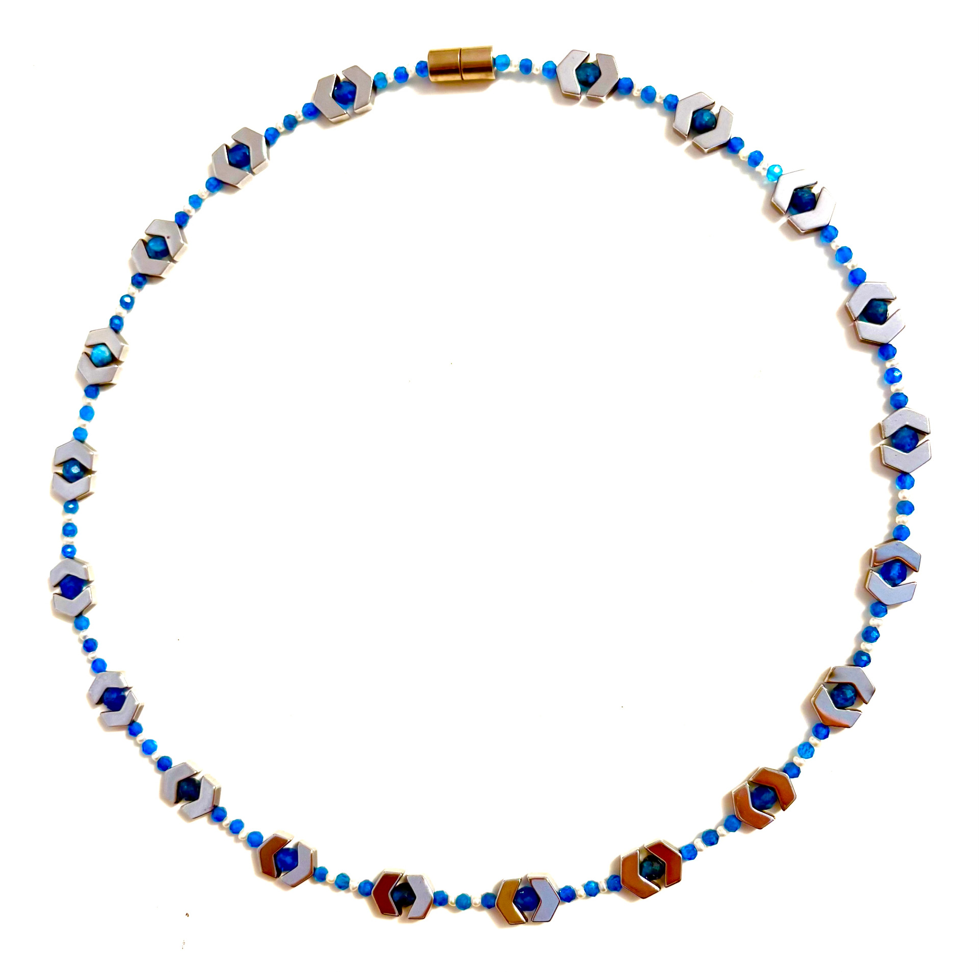 Apatit Perlen Kette, mit Silber-Elementen, Magnet-Schließe