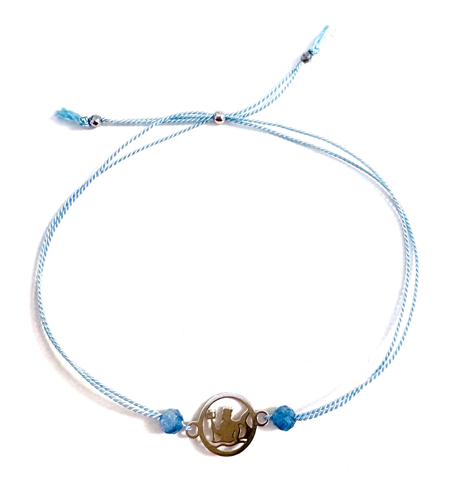 Aquamarin Armband, Perlseide, Wassermann (silber), facettiert