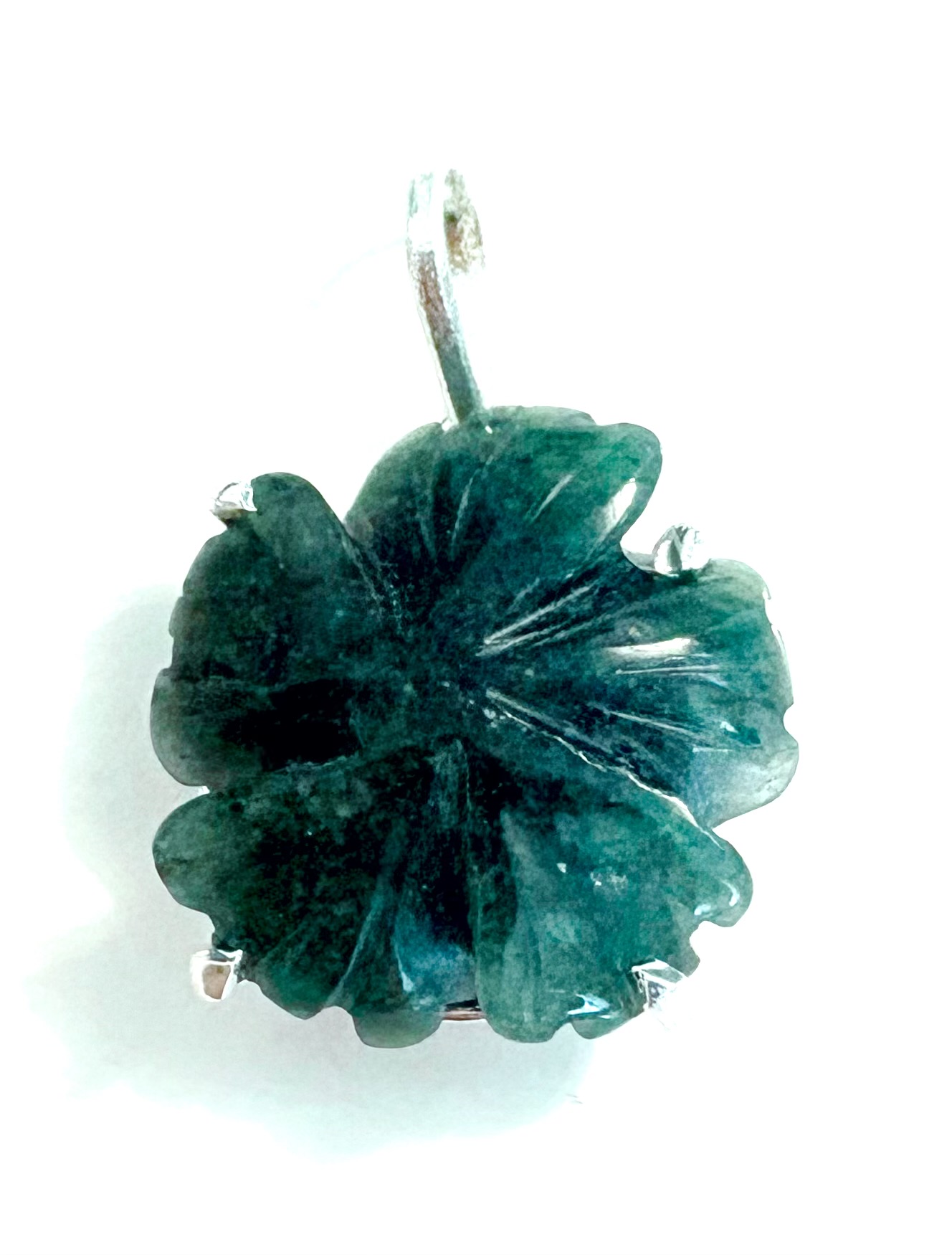 Aventurin Anhänger, Blume, silber, 33x25