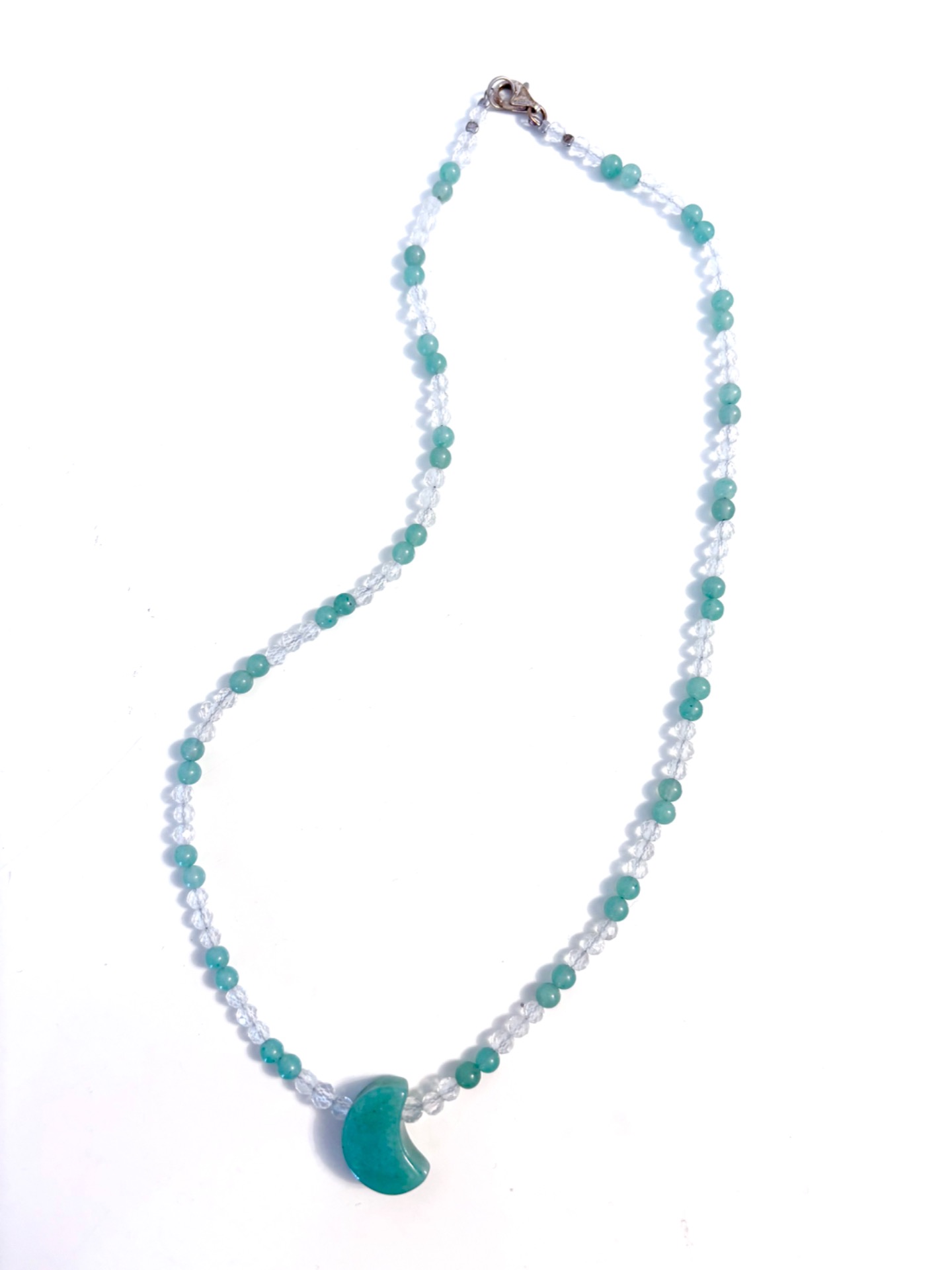 Aventurin Kette mit Bergkristall, mit Karabinerschliesse