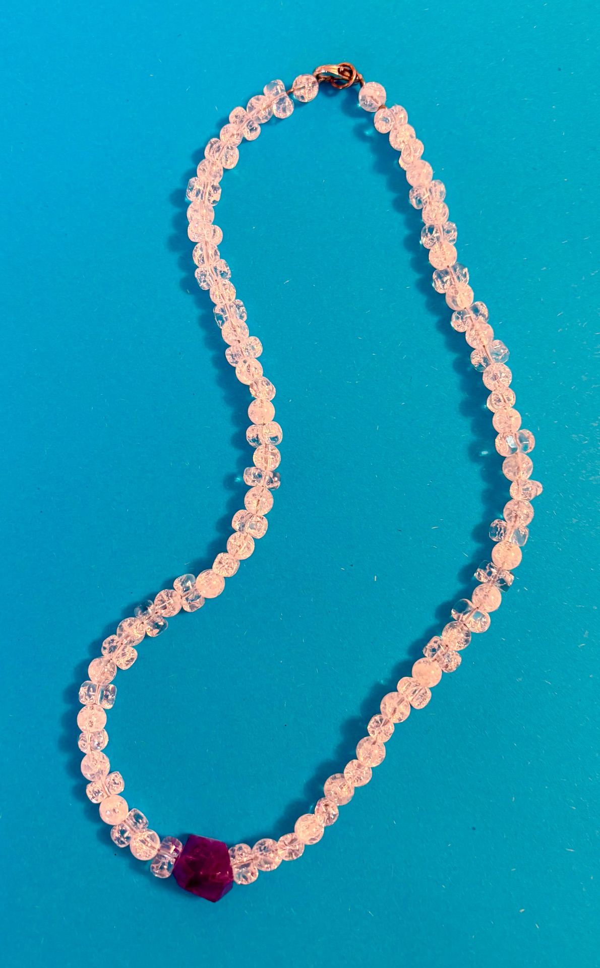 Bergkristall Kette mit Amethyst-Nugget, Karabiner-Schliesse