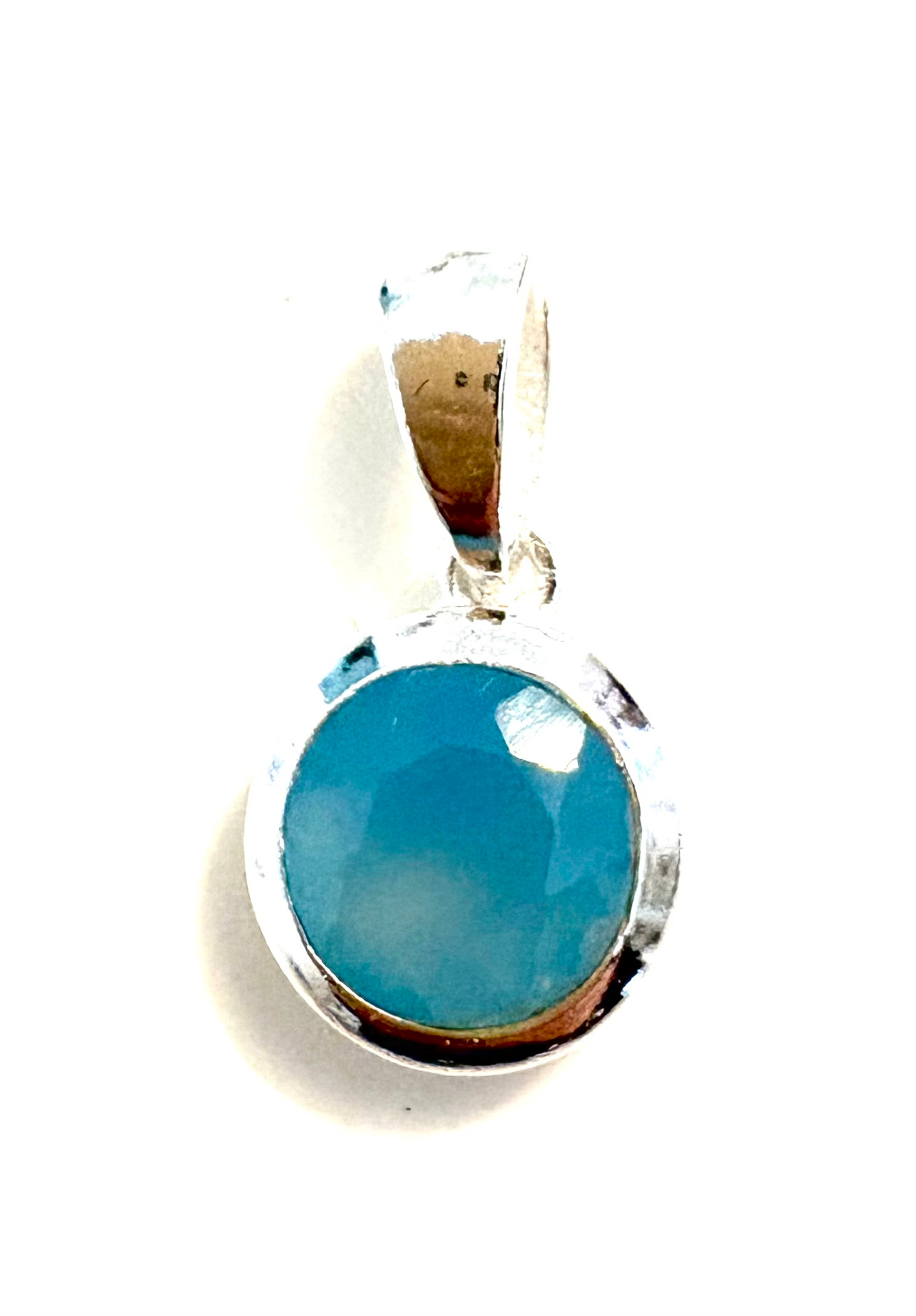 Blauer Calzit Anhänger, facettiert, 925 Sterlingsilber
