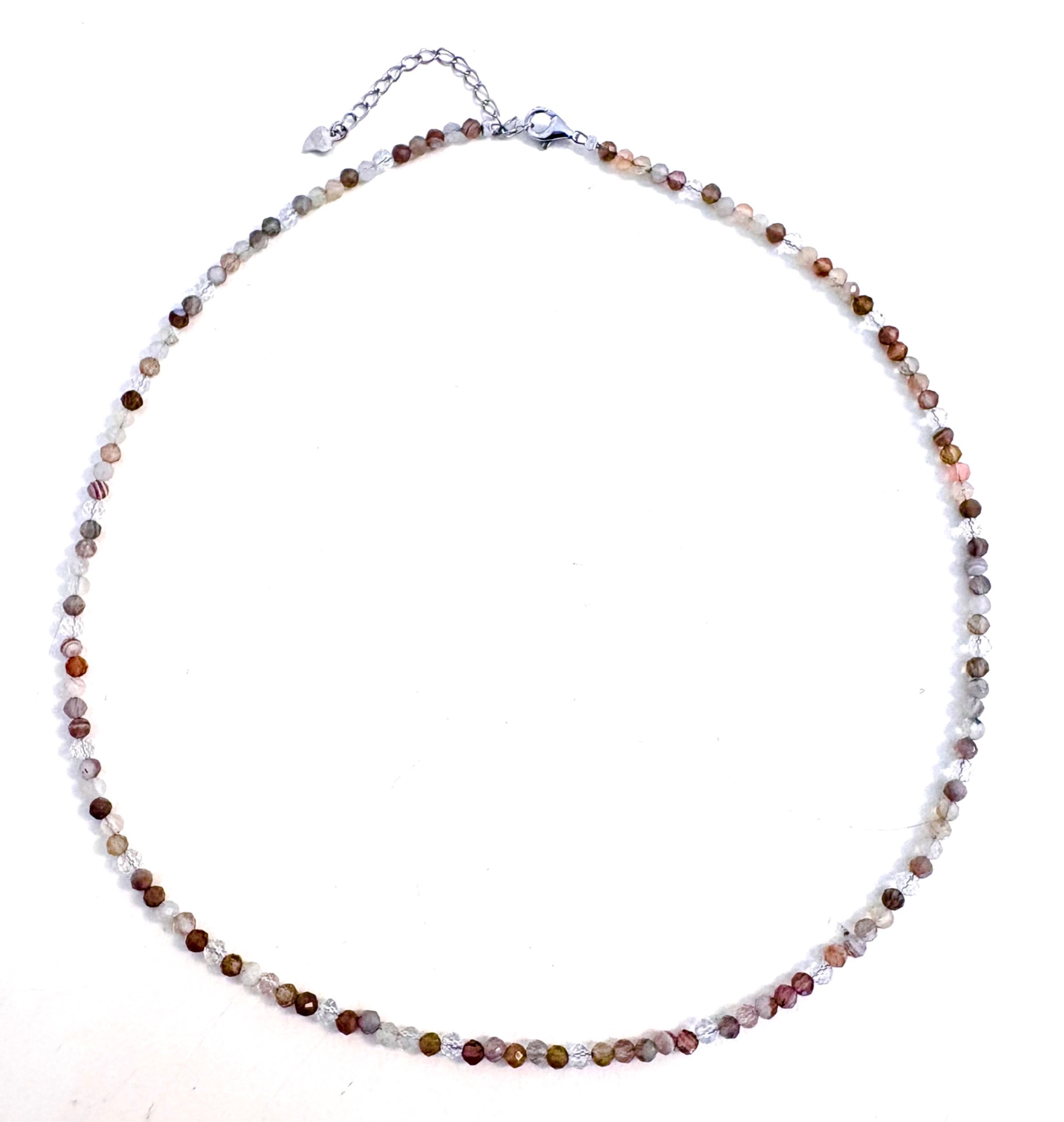 Botswana-Achat Kette, mit Bergkristall, Karabiner-Schließe
