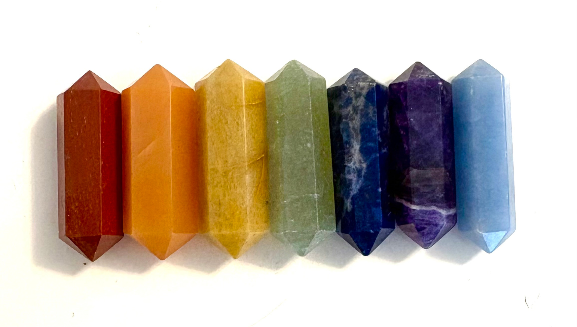 Roter Jaspis, Oranger Aventurin, Gelber Aventurin, Grüner Aventurin, Lapislazuli, Amethyst, Angelit
