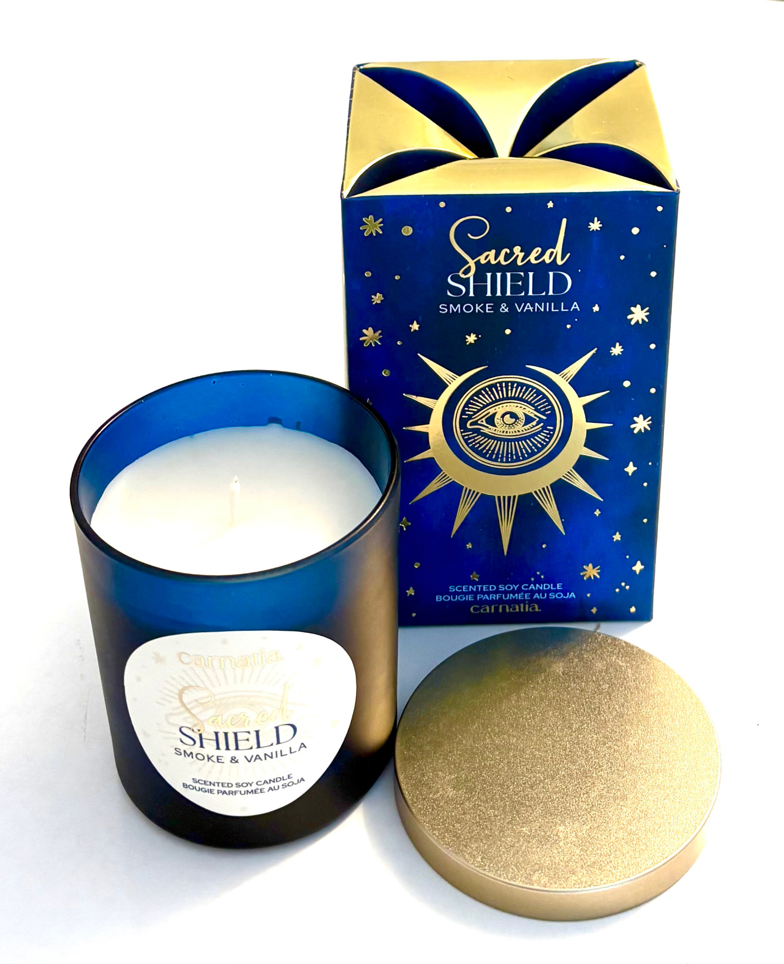 Duftkerze "Sacred Shield" mit goldfarbenem Metall-Deckel,
