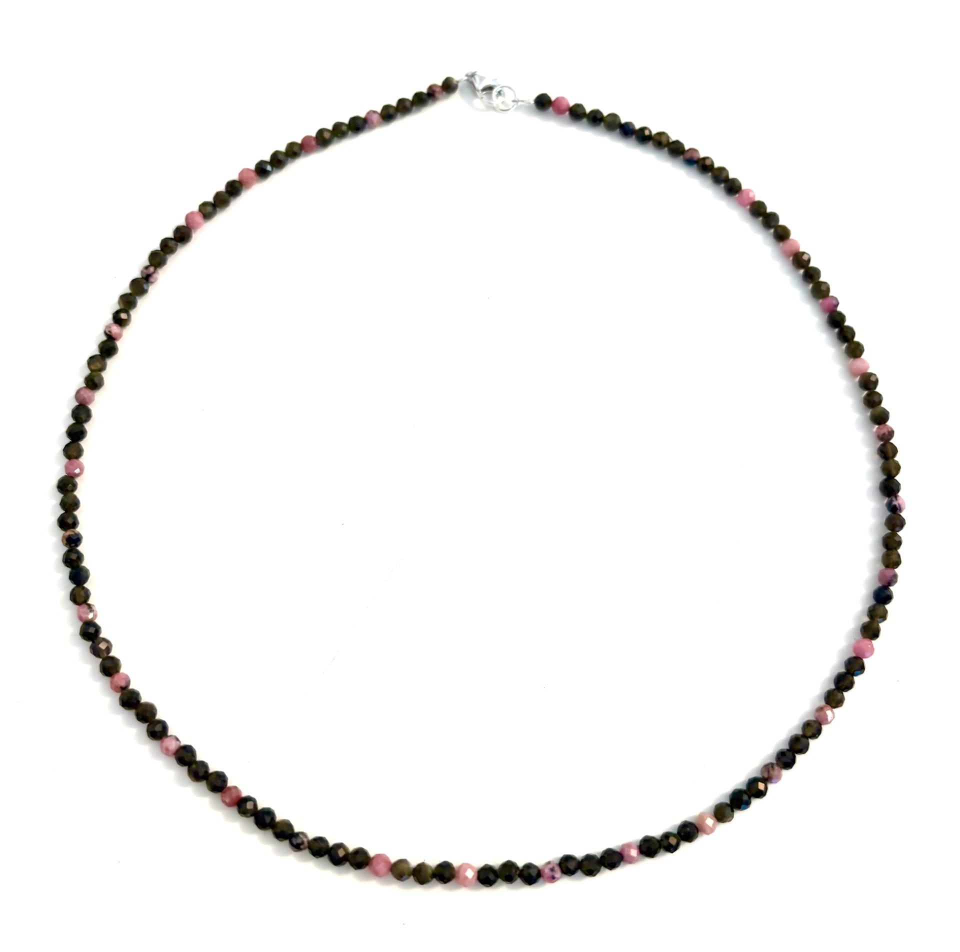 Goldobsidian Rhodonit Kette, facettiert,mit Karabiner-Schließe
