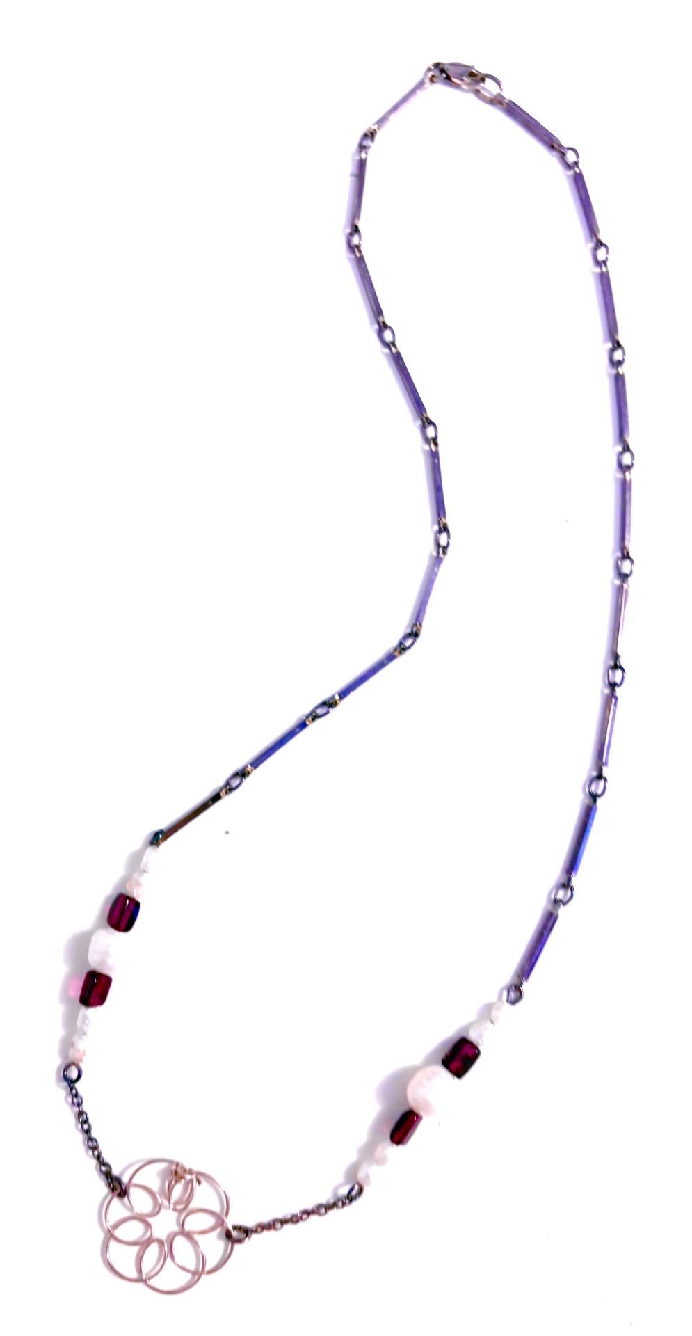 Granat Perlen Kette, Silber, mit Karabiner-Schließe