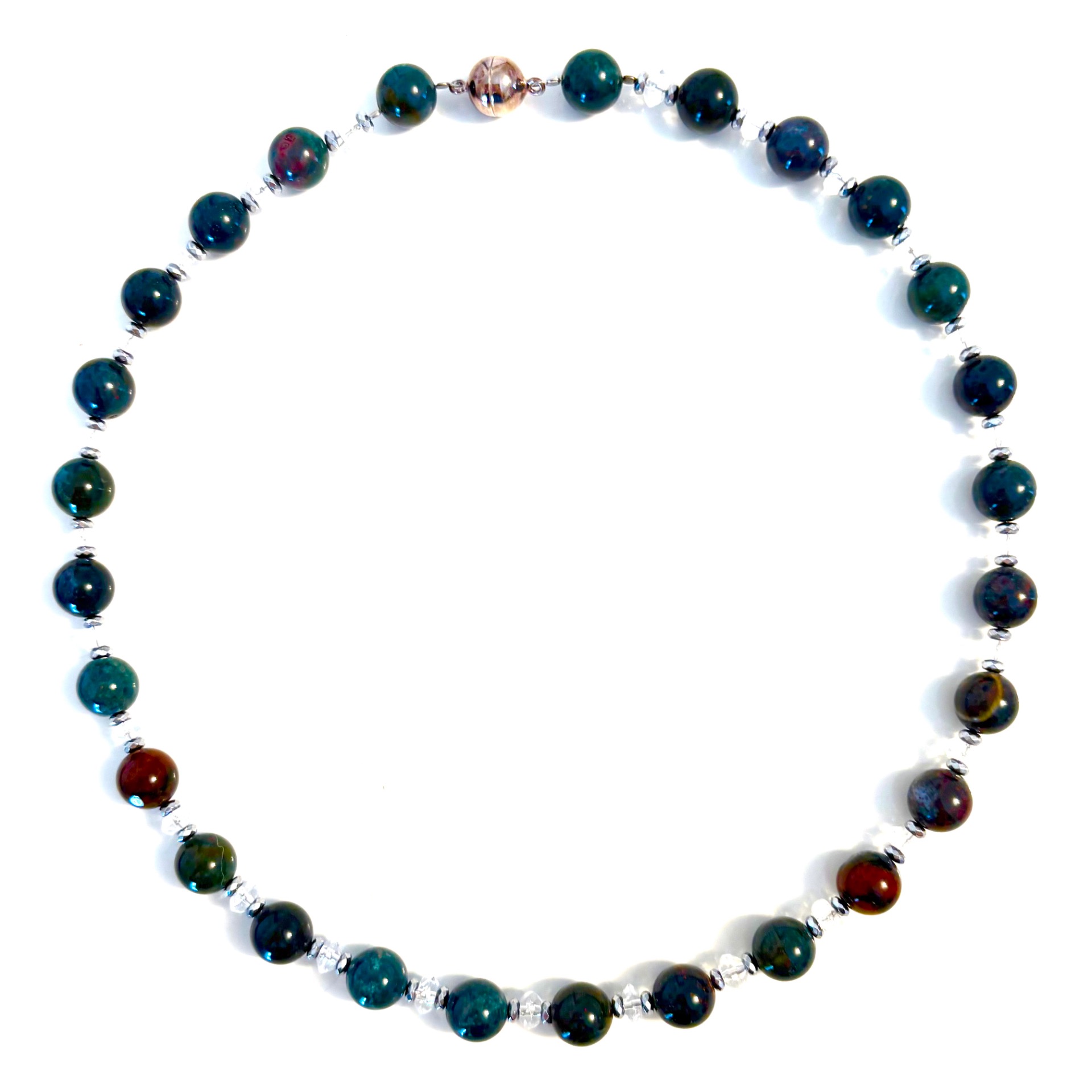 Heliotrop - Kette mit Bergkristall, Kugel-Magnetschliesse,