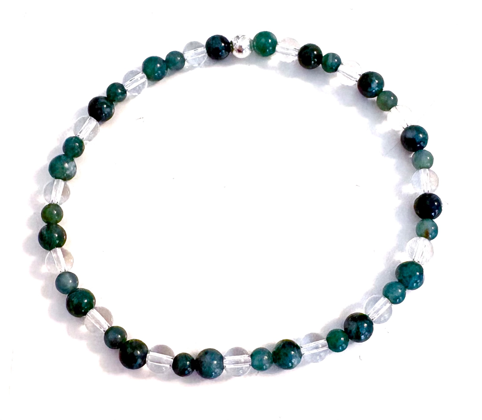 Guatemala Jade Armband, mit Bergkristall, glatt, auf Elastikband
