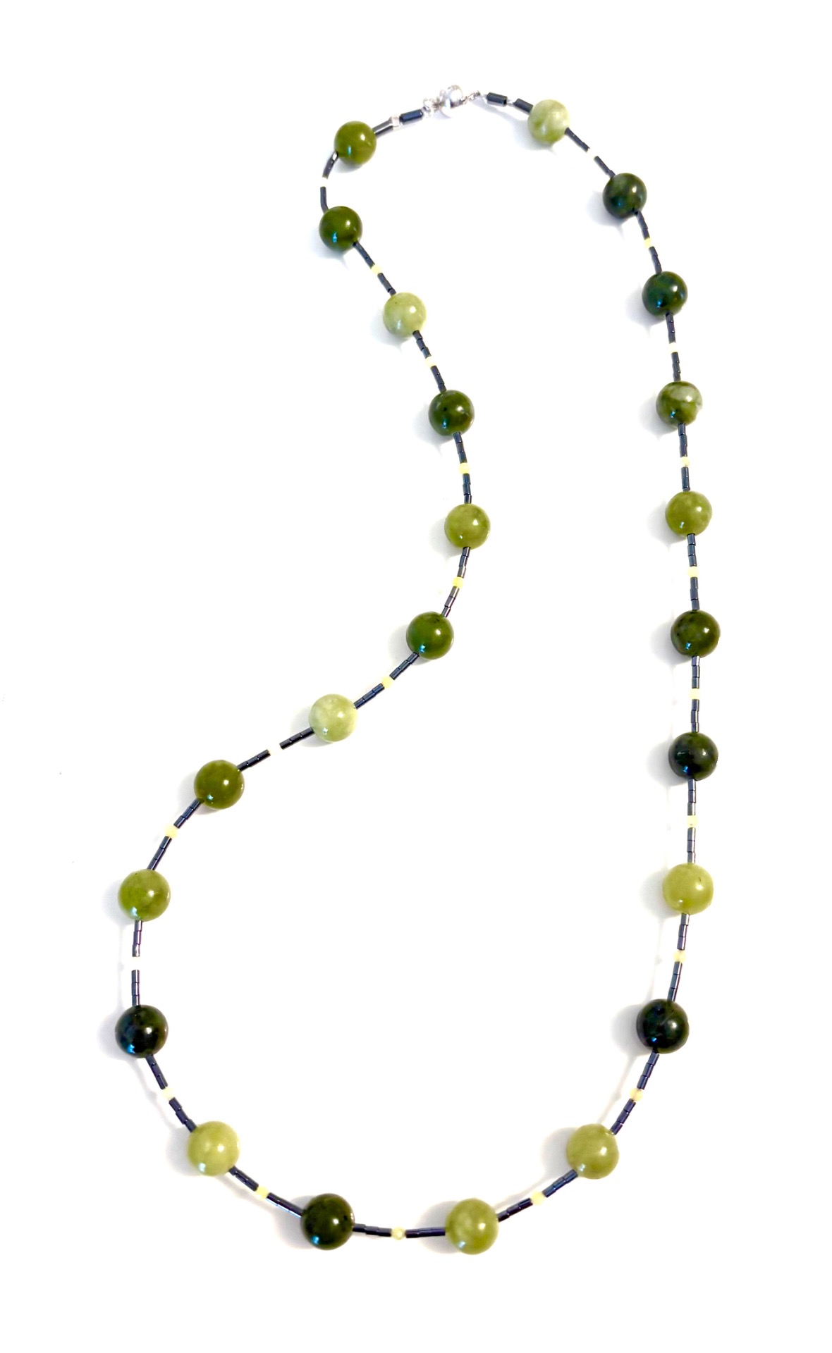 Jade Kette mit Zitronenchrysopras und Hämatit; mit Kugel-Magnetschliesse