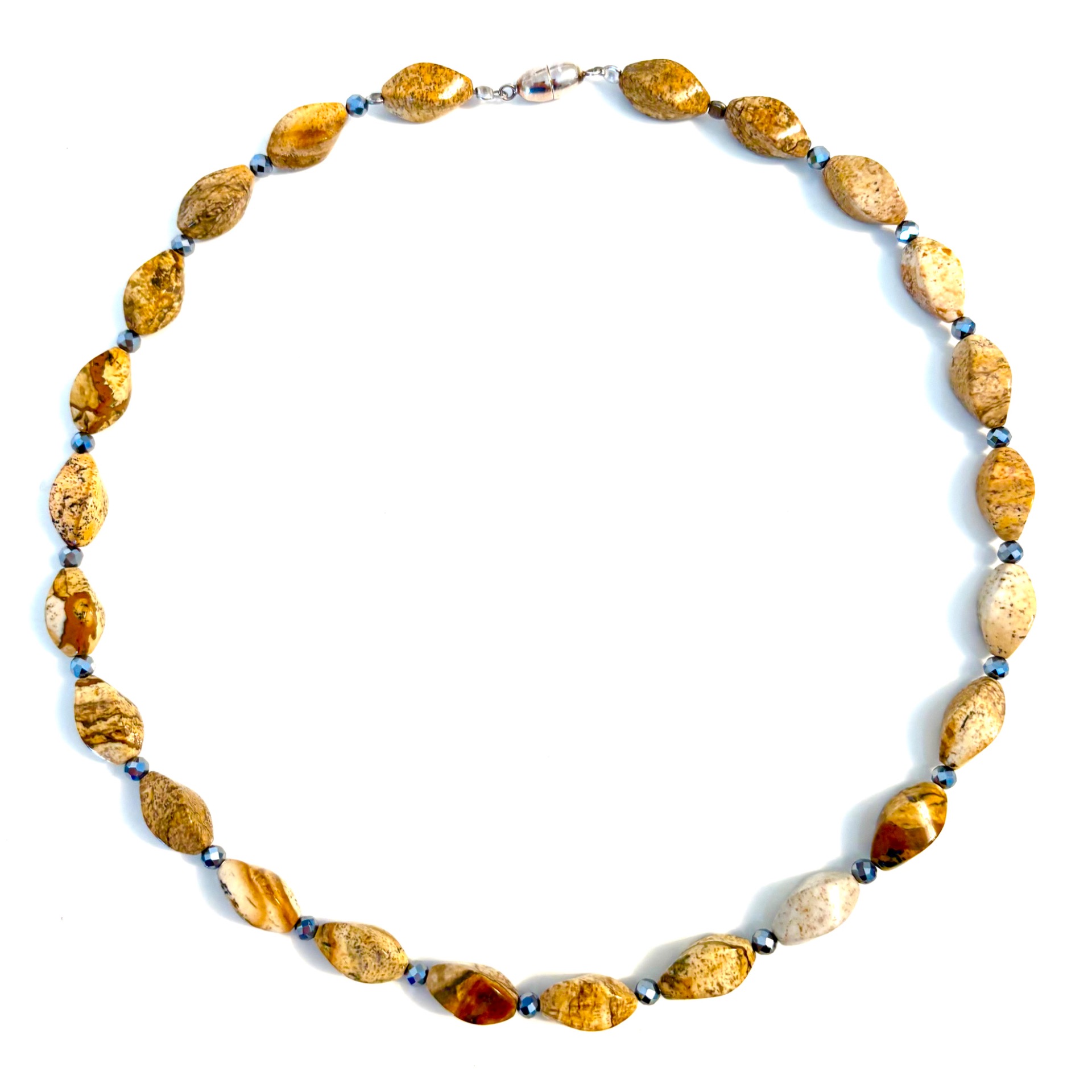 Landschaftsjaspis - Kette mit Therahertz, Oliven-Magnetschliesse