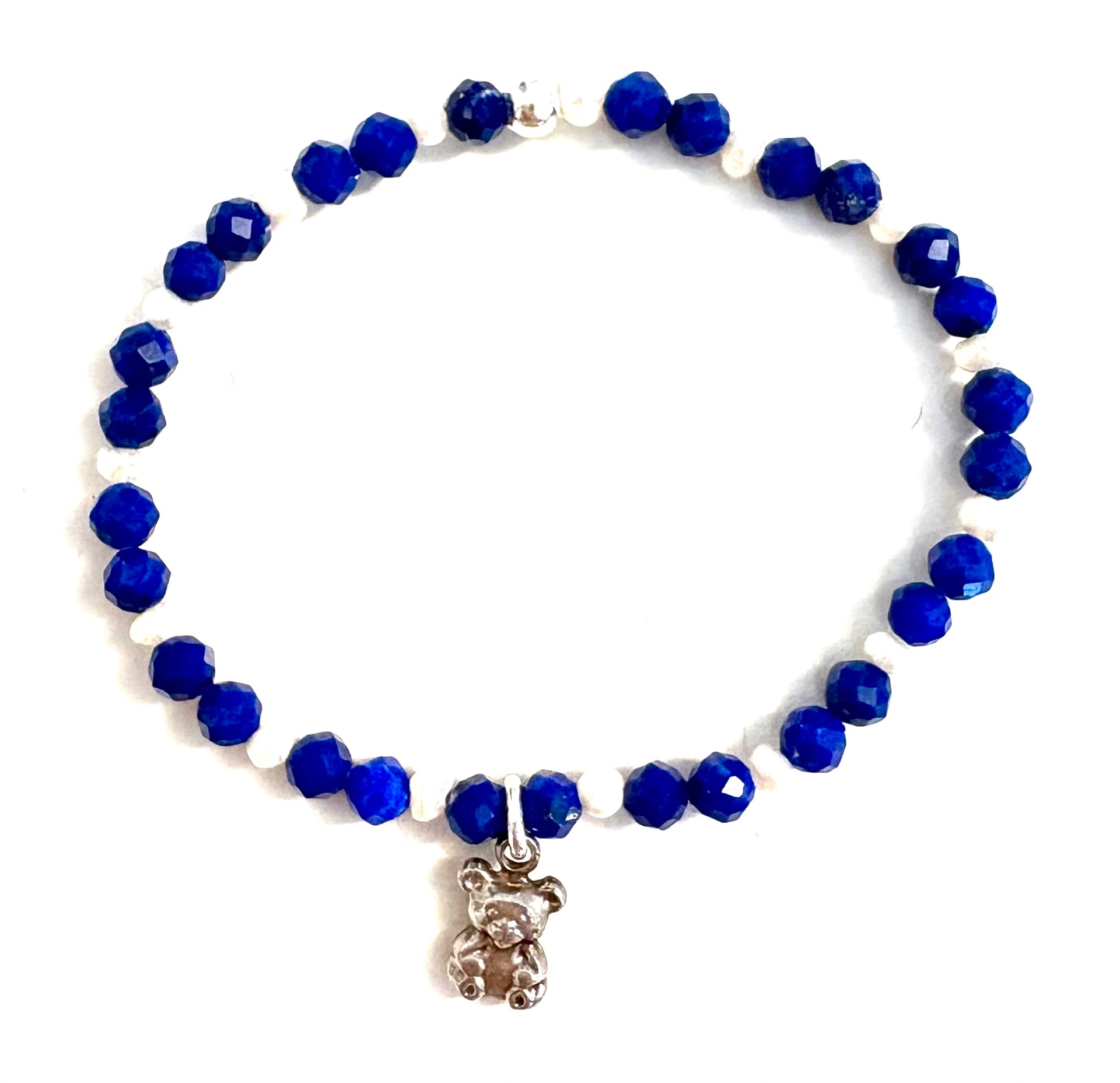 Lapislazuli Perlen Kinderarmband, mit Silber-Teddy