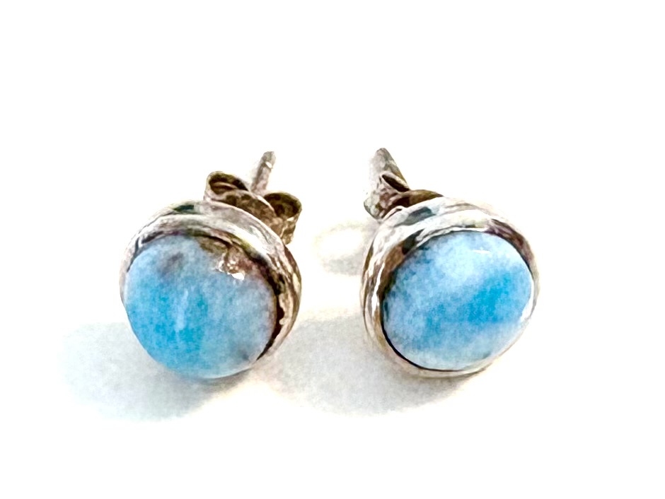 Larimar Ohrstecker, rund, 925 Sterlingsilber