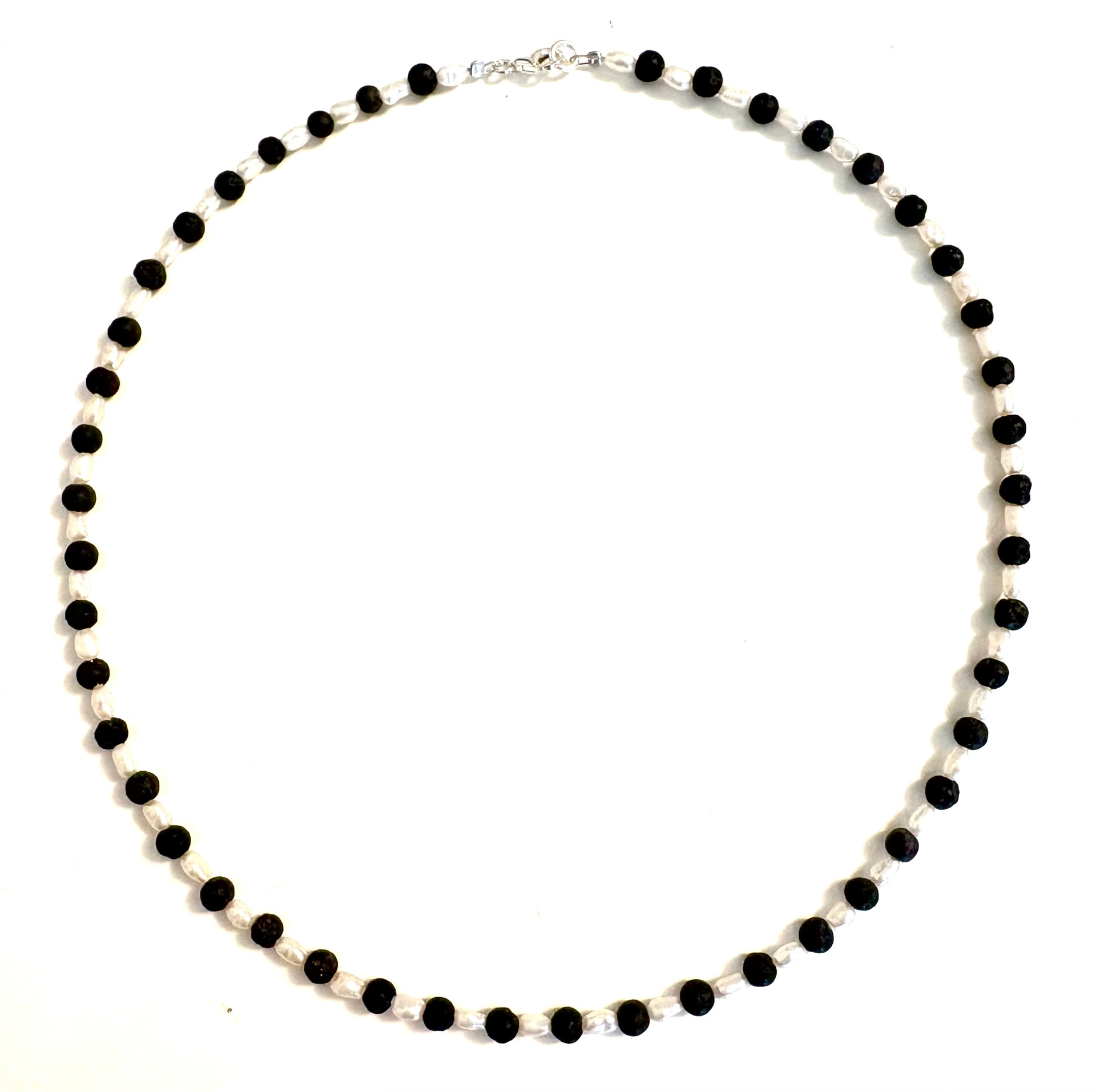 Lavastein Kette mit Perle, Karabiner-Schließe