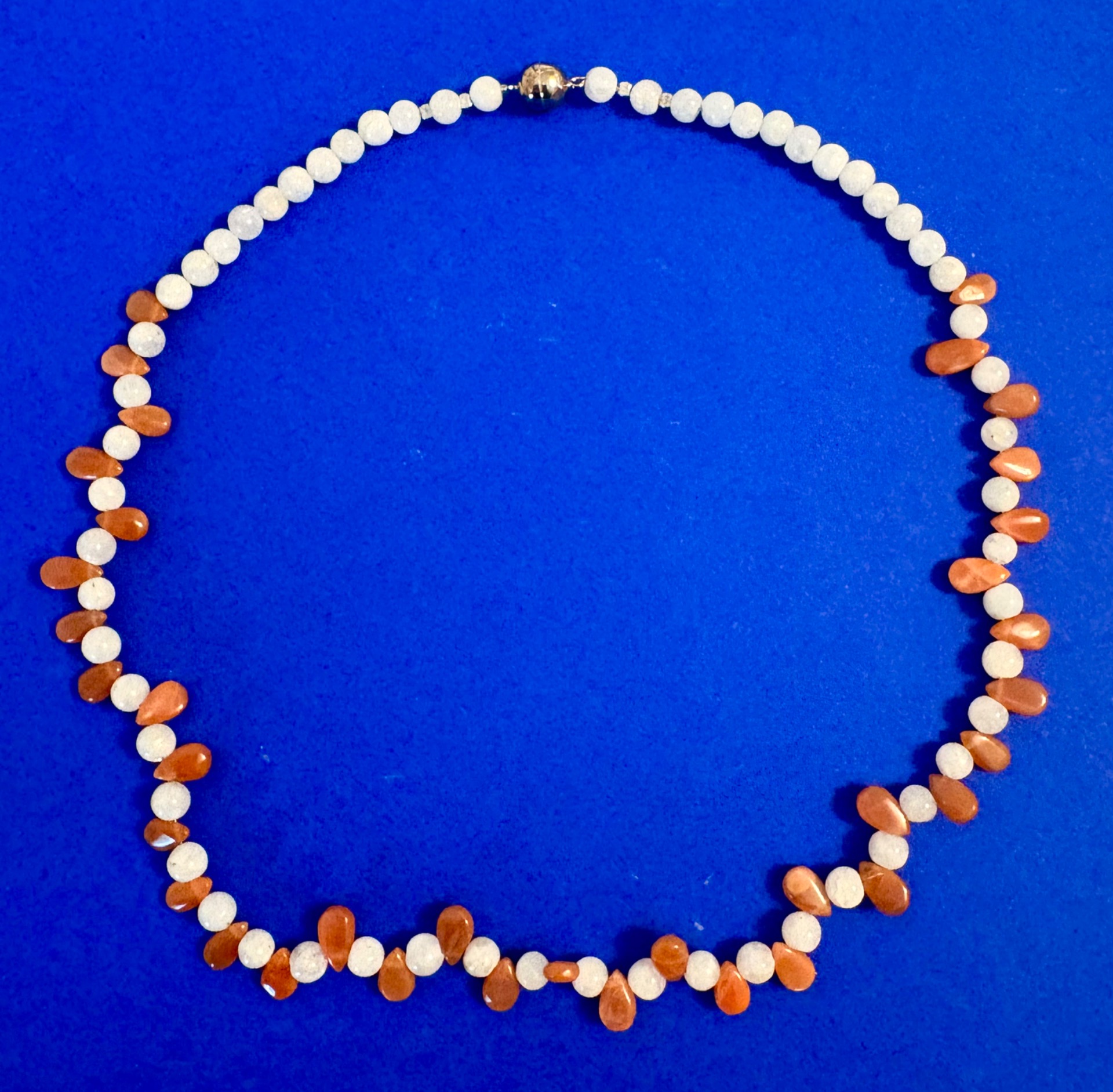 Mondstein Kette, weiß und rot, mit Kugel-Magnetschliesse