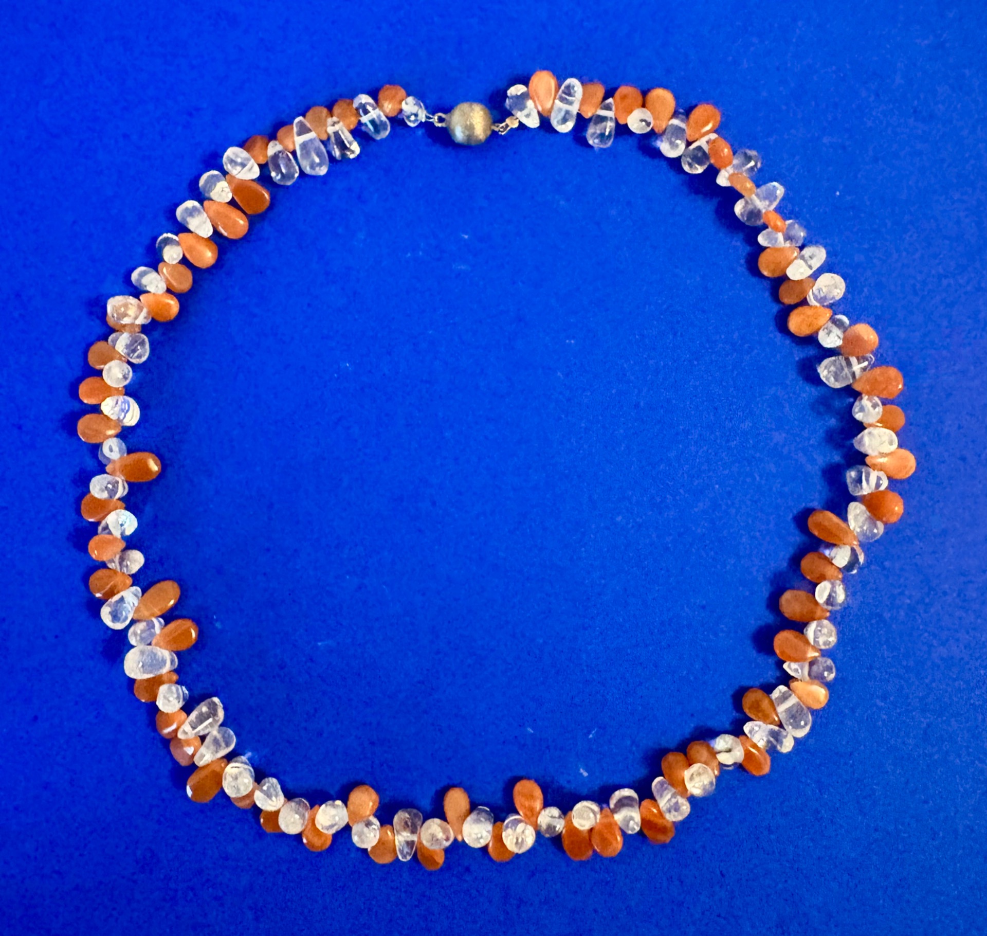 Mondstein Kette mit Bergkristall, mit Kugel-Magnetschliesse