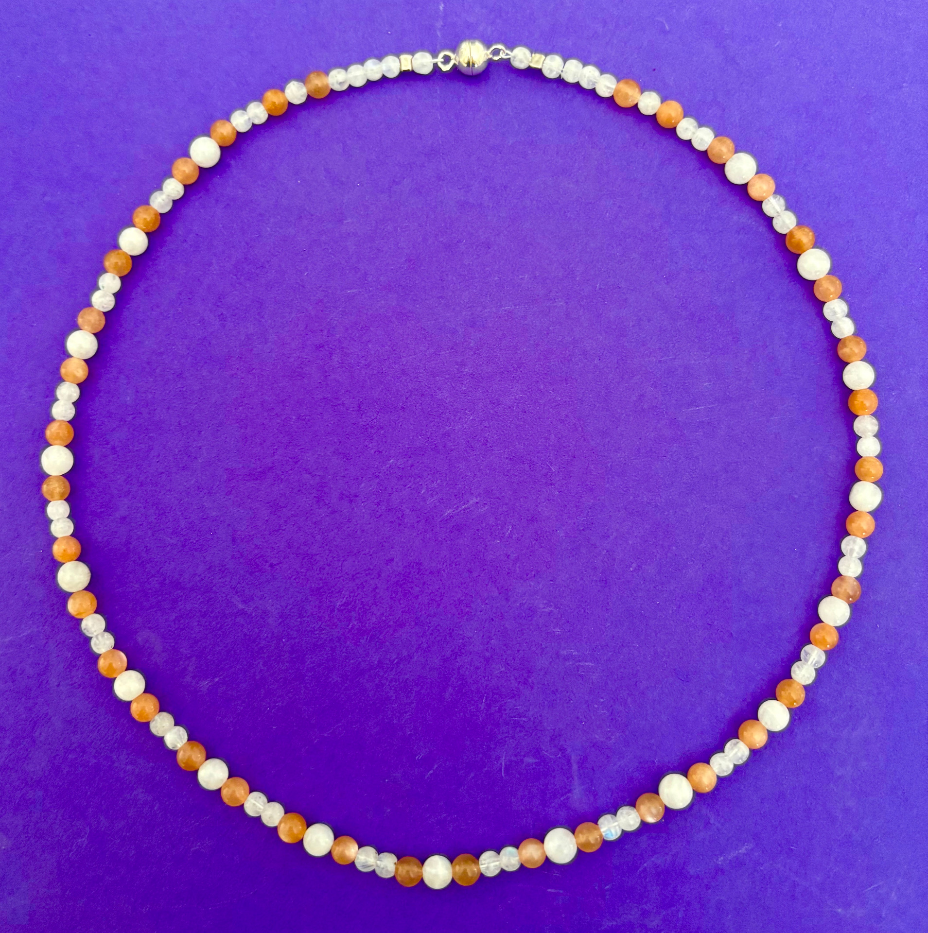 Mondstein Kette, weiß-apricot, mit Magnet-Schließe
