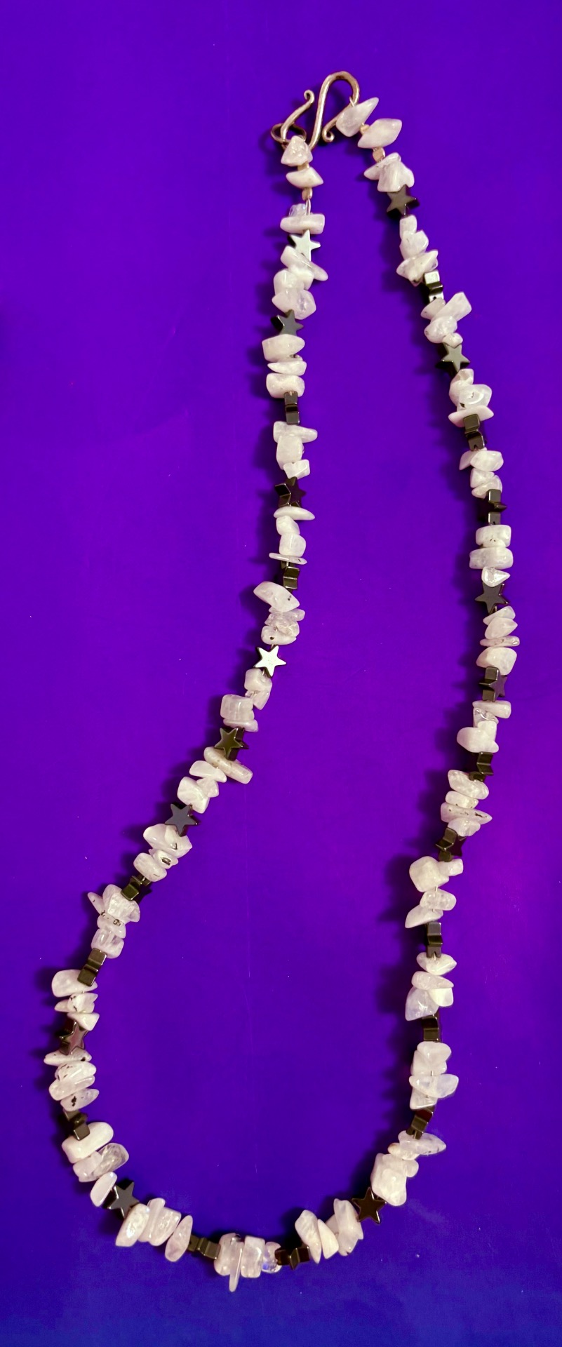 Mondstein Kette mit Hämatit-Sternen, Haken-Schließe