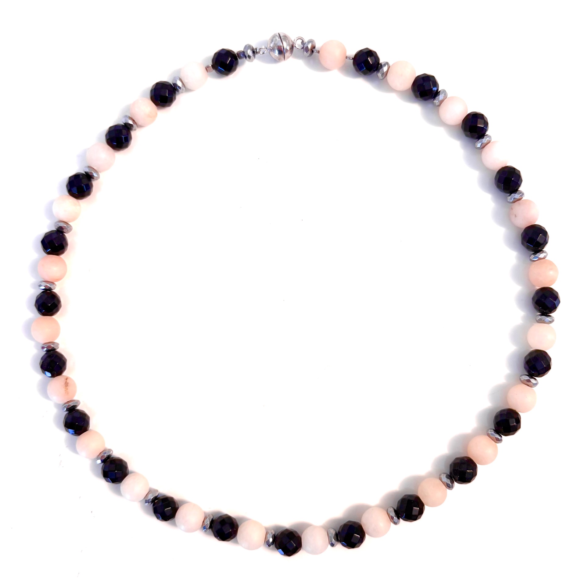 Onyx - Kette mit rosa Achat, mit Kugel-Magnetschliesse