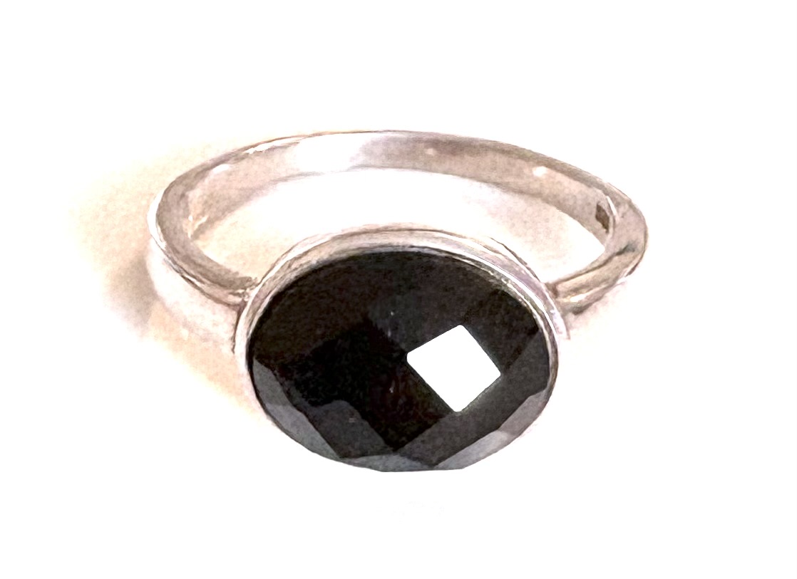 Onyx Ring, facettiert, 925 Sterlingsilber