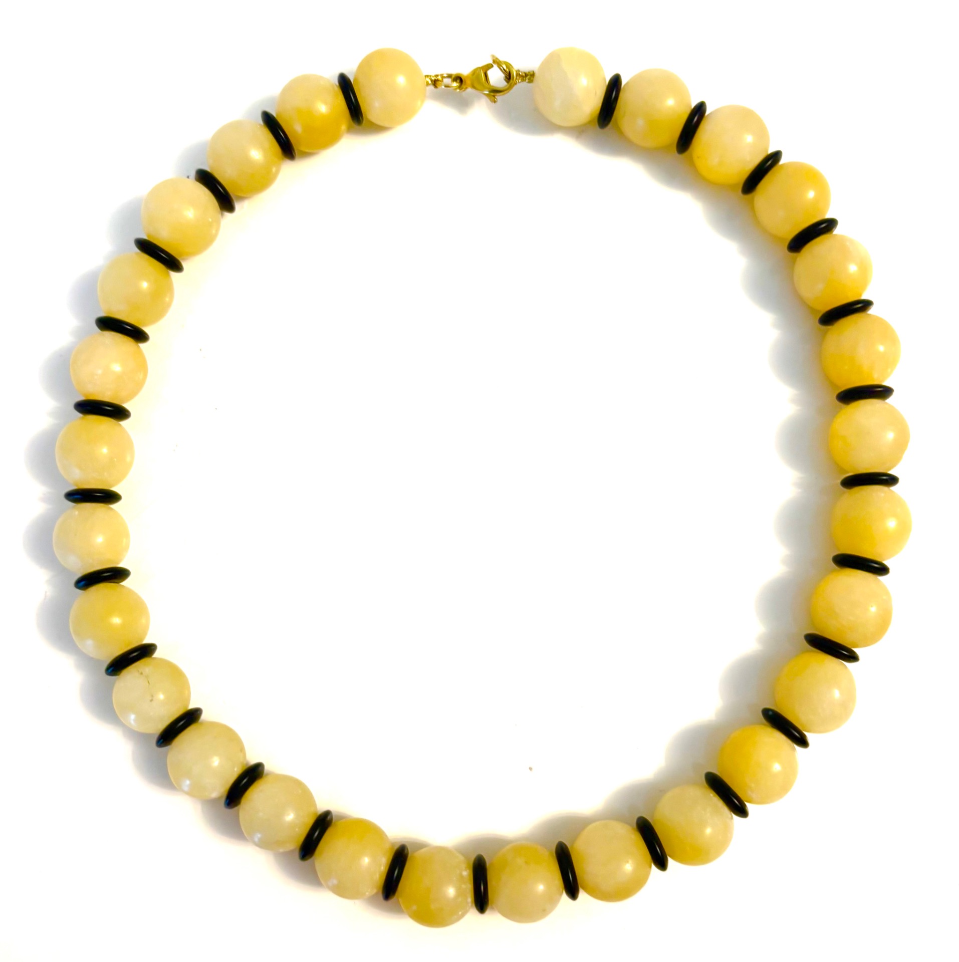 Orangencalzit Kette mit Onyx, mit Karabiner-Schliesse