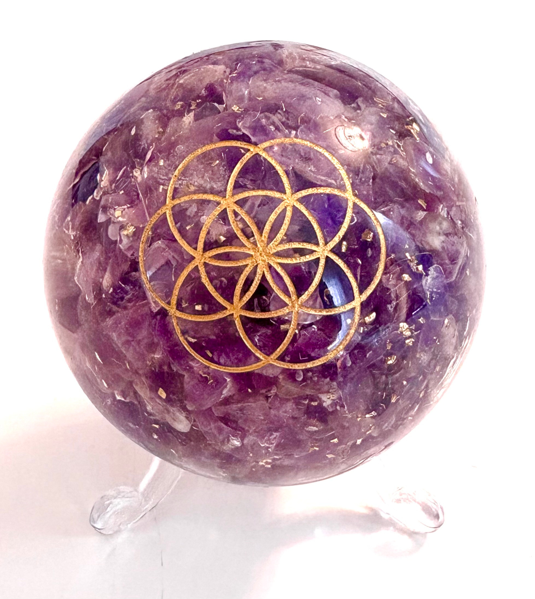 Orgonit Kugel Amethyst, "Samen des Lebens"
