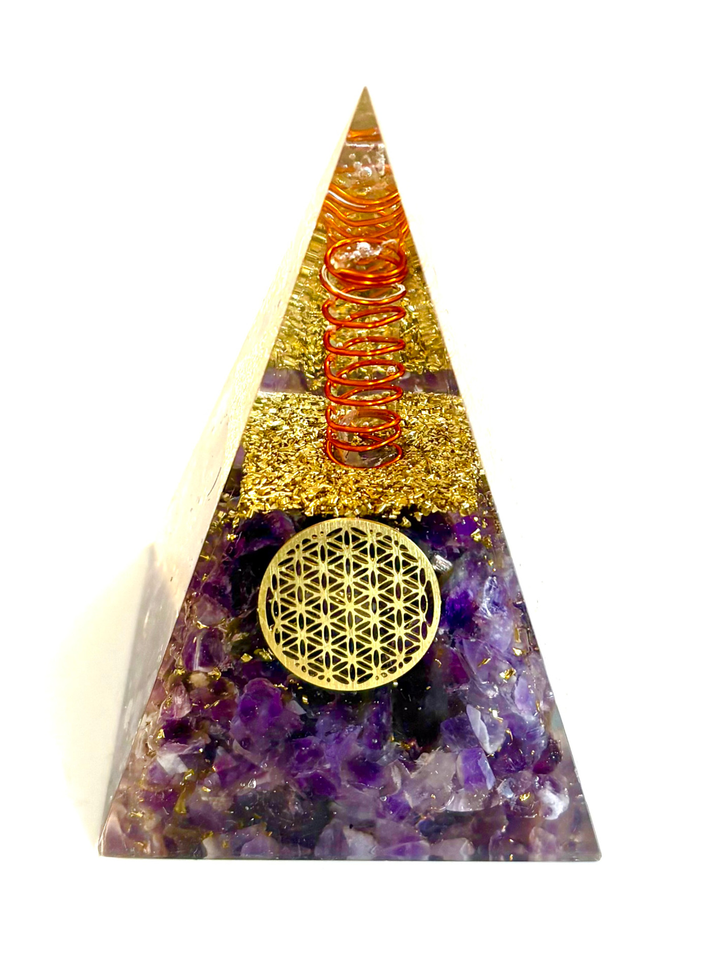Orgonit Pyramide Amethyst, "Blume des Lebens"