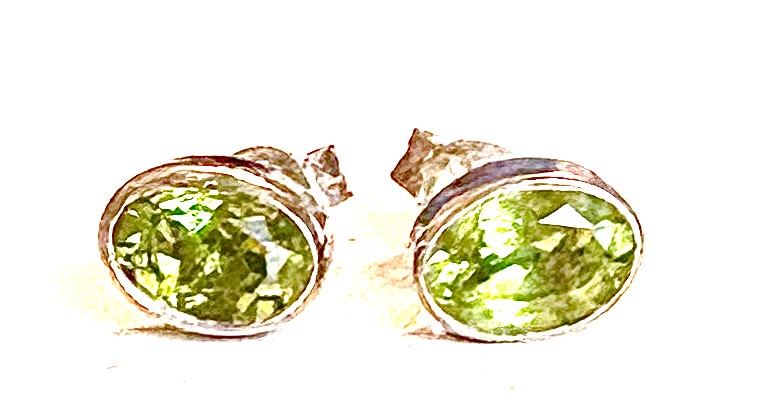 Peridot Ohrstecker, oval, facettiert, 925 Sterlingsilber