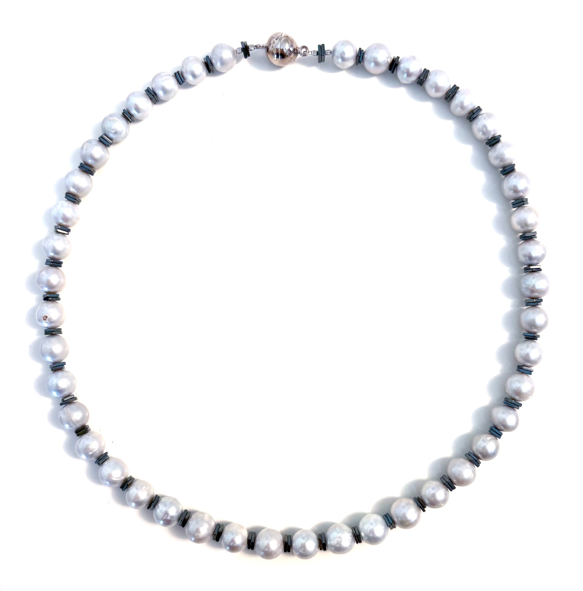 Perlen - Kette, silber, mit Hämatit, Kugenl-Magnetschliesse
