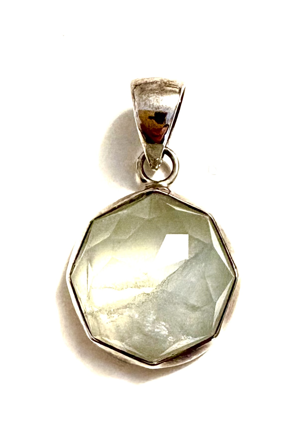 Prehnit Anhänger, rund, facettiert, mit Silberöse