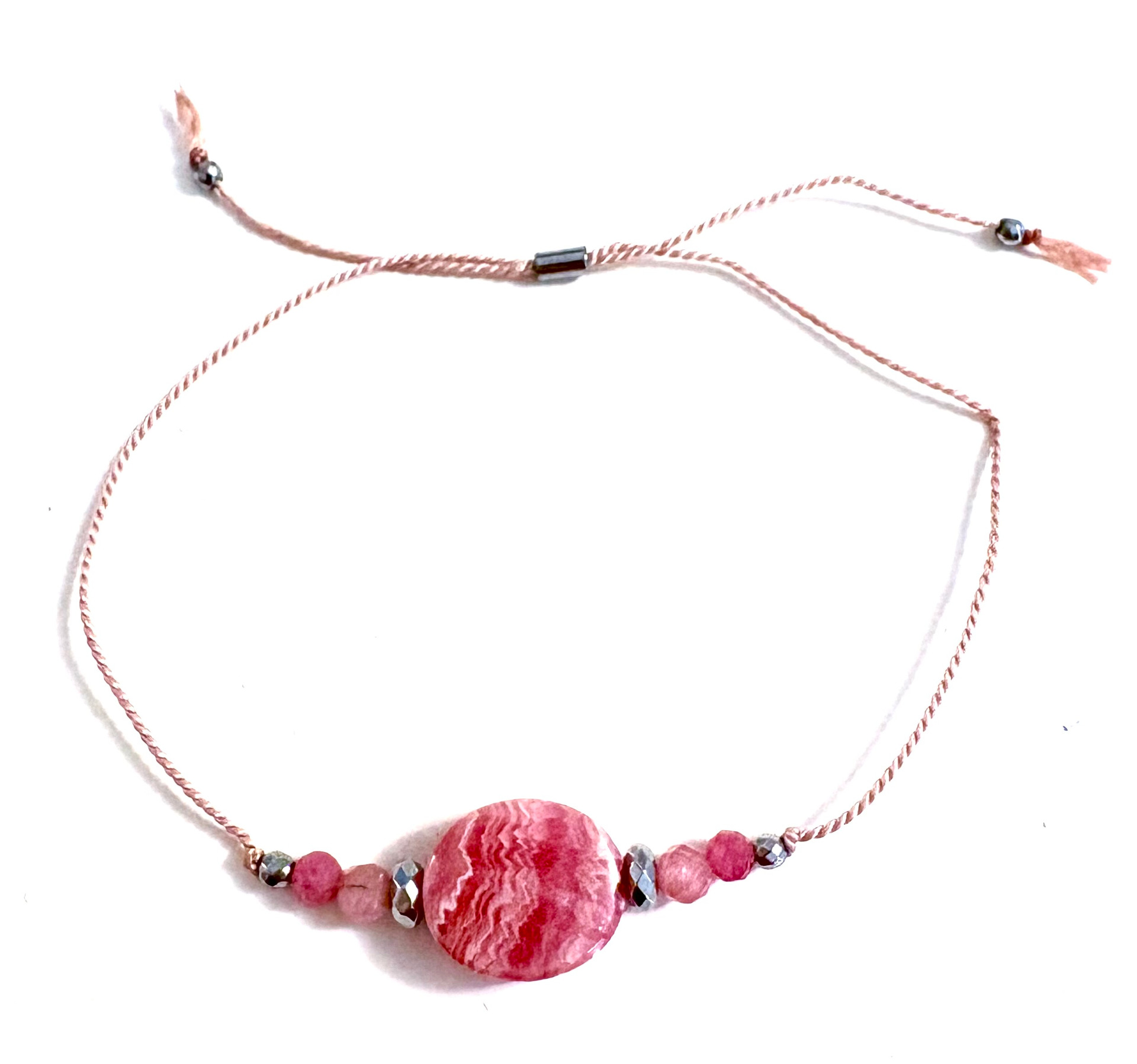 Rhodochrosit Armband, Perlseide, glatt und facettiert