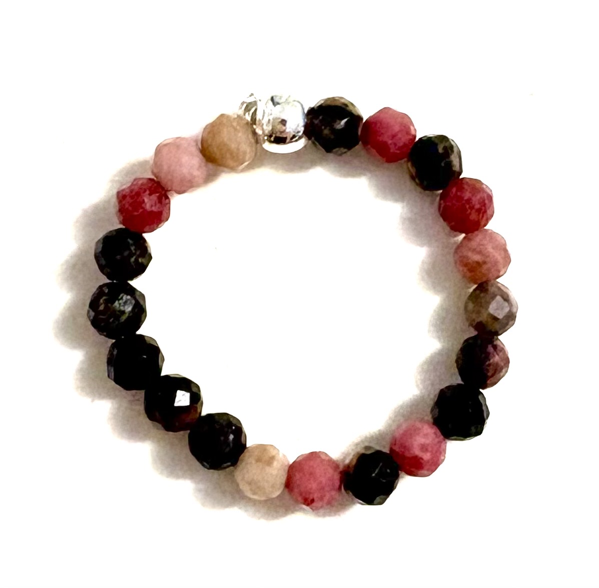Rhodonit Ring, facettiert, auf Elastikband