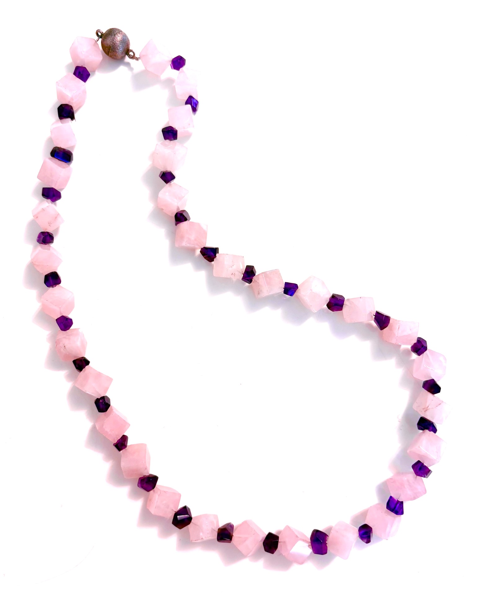 Rosenquarz Amethyst Kette, Würfelform mit Nuggets