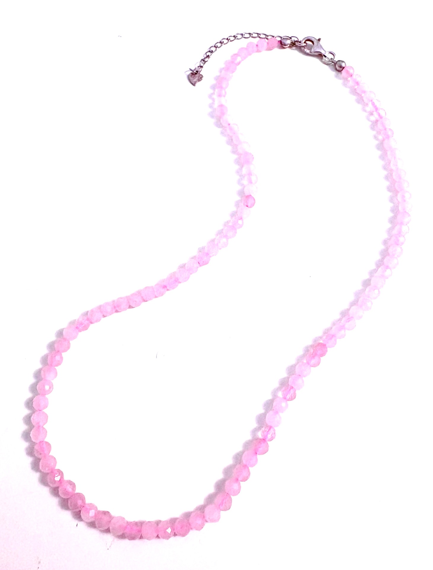 Rosenquarz Kette, facettiert, mit Karabiner-Schließe