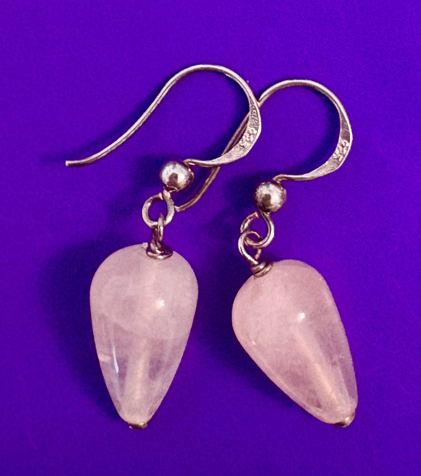 Rosenquarz-Ohrhänger, Tropfen, 925 Silber