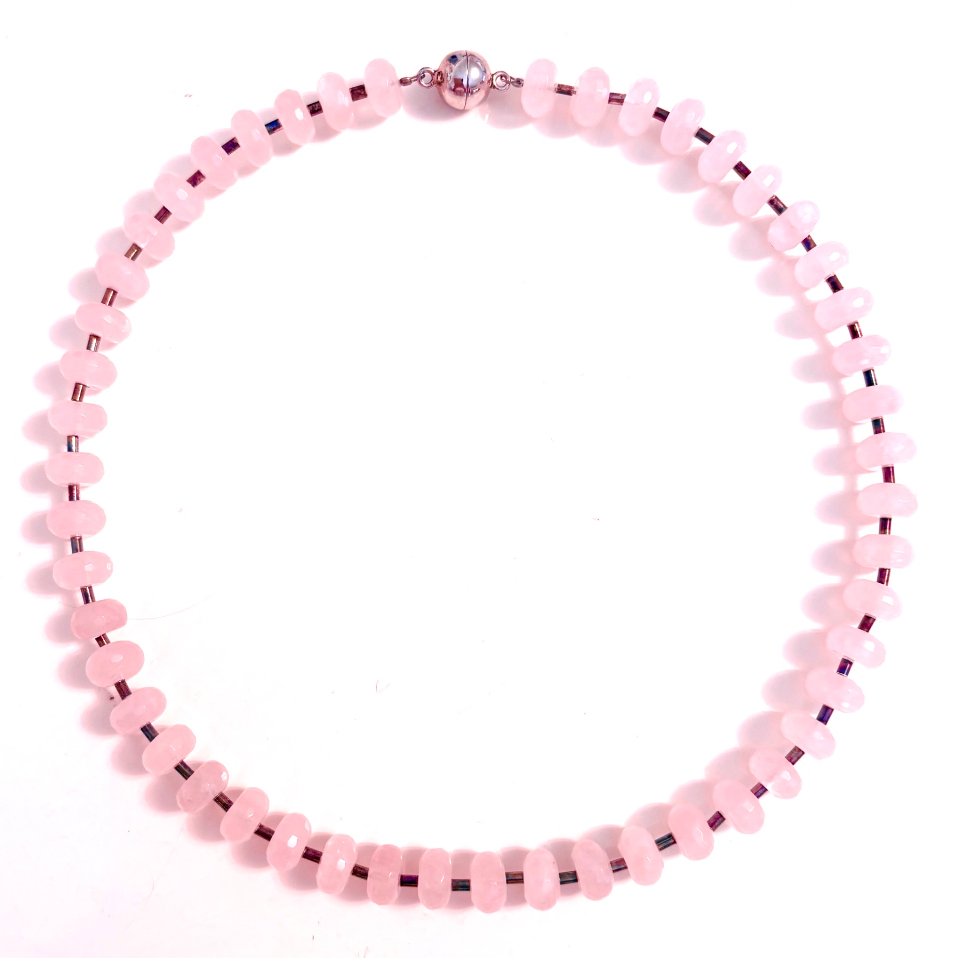 Rosenquarz-Kette Linsenform mit Silberelementen, Kugel-Magnetschließe