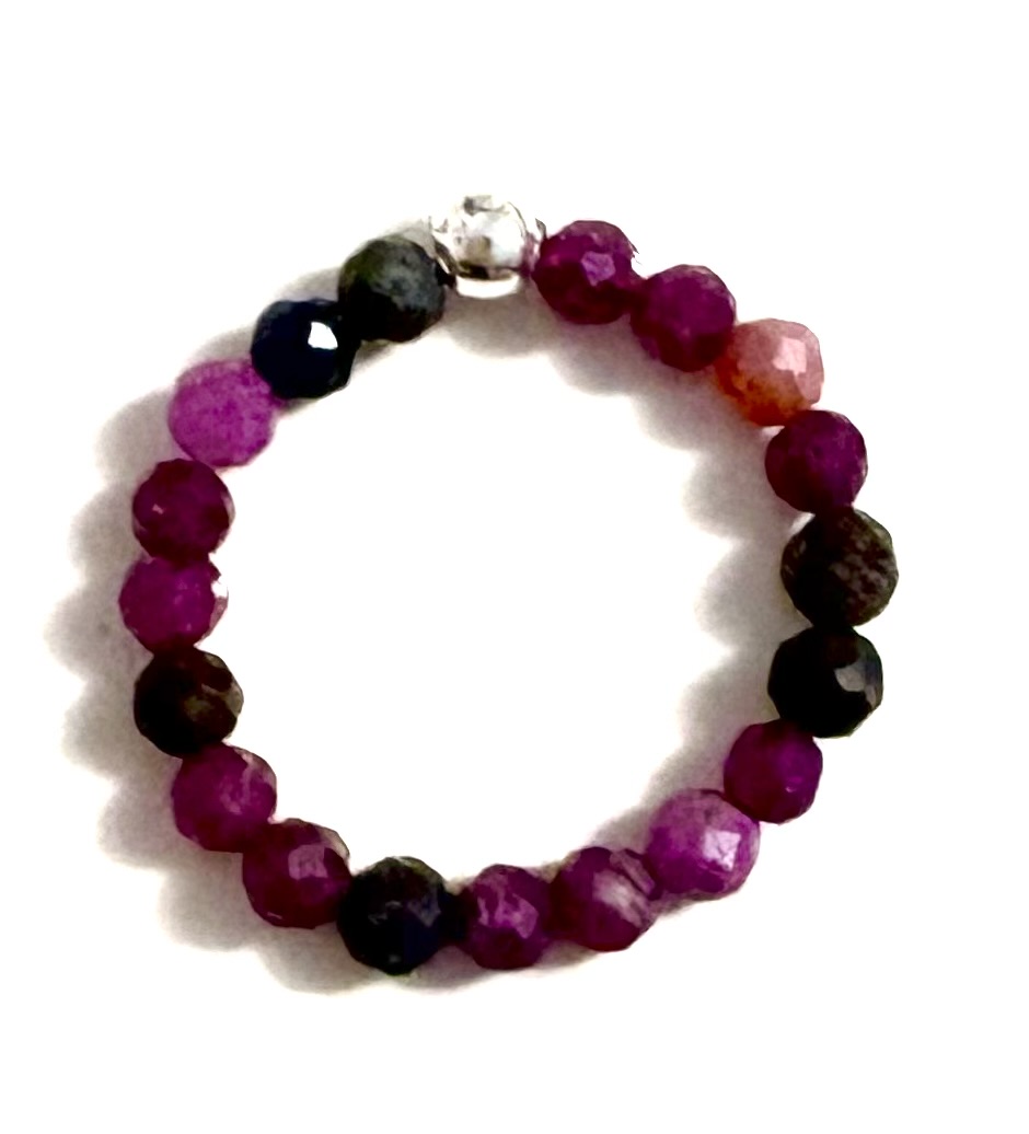 Rubin-Saphir Ring, facettiert, auf Elastikband