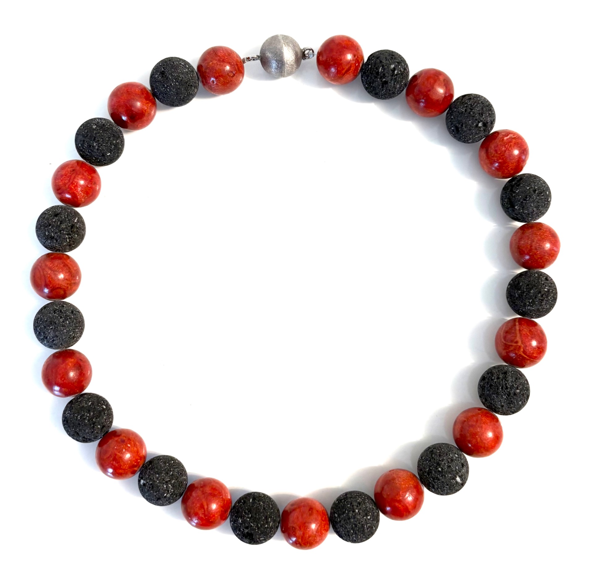 Schaumkorallen Kette mit Lavastein, Kugel-Magnetschliesse