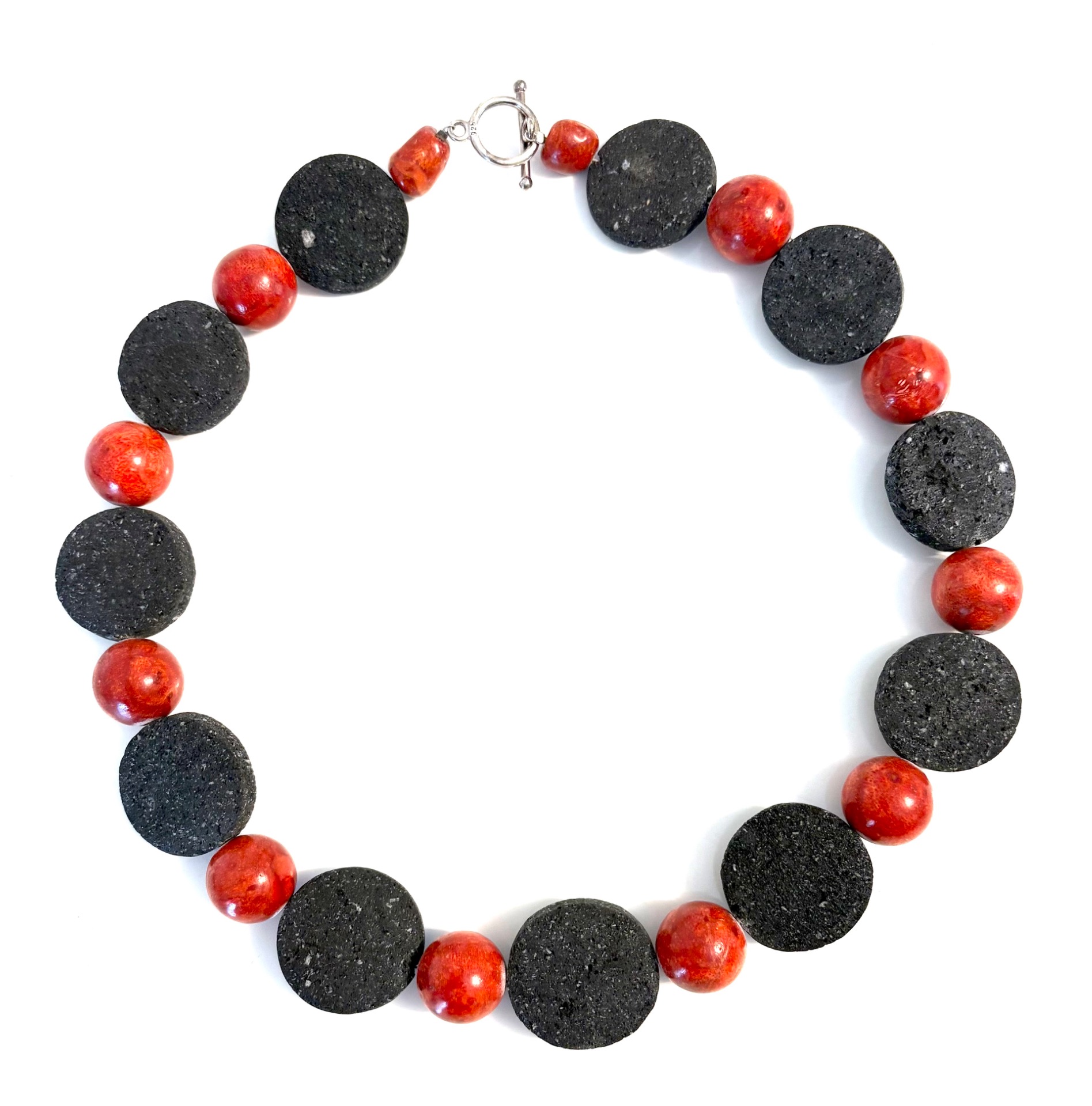 Schaumkorallen Kette mit Lavastein, Stab-Ring-Schliesse