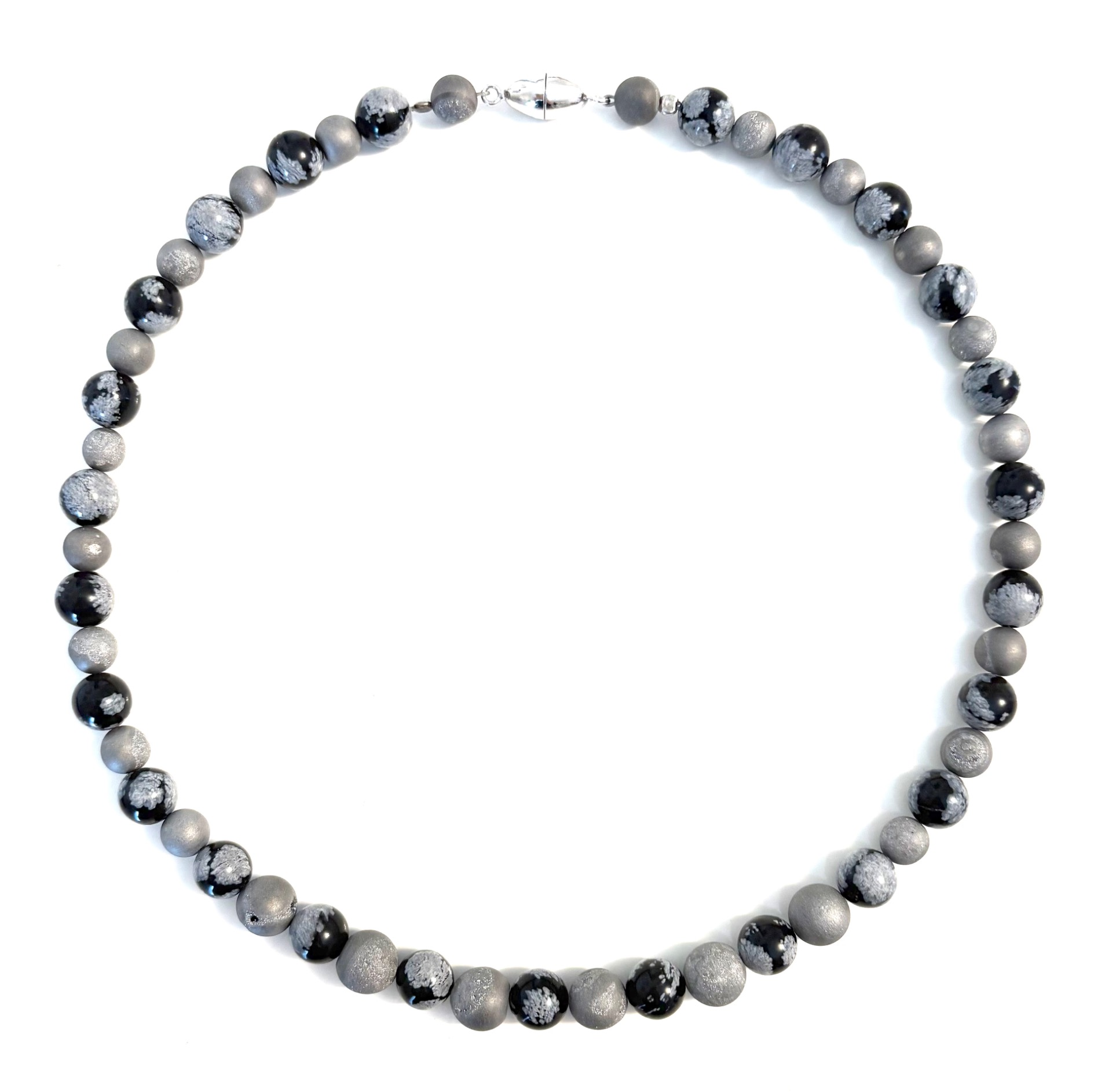 Schneeflockenobsidian - Kette mit Drusenachat, Oliven-Magnetschliesse