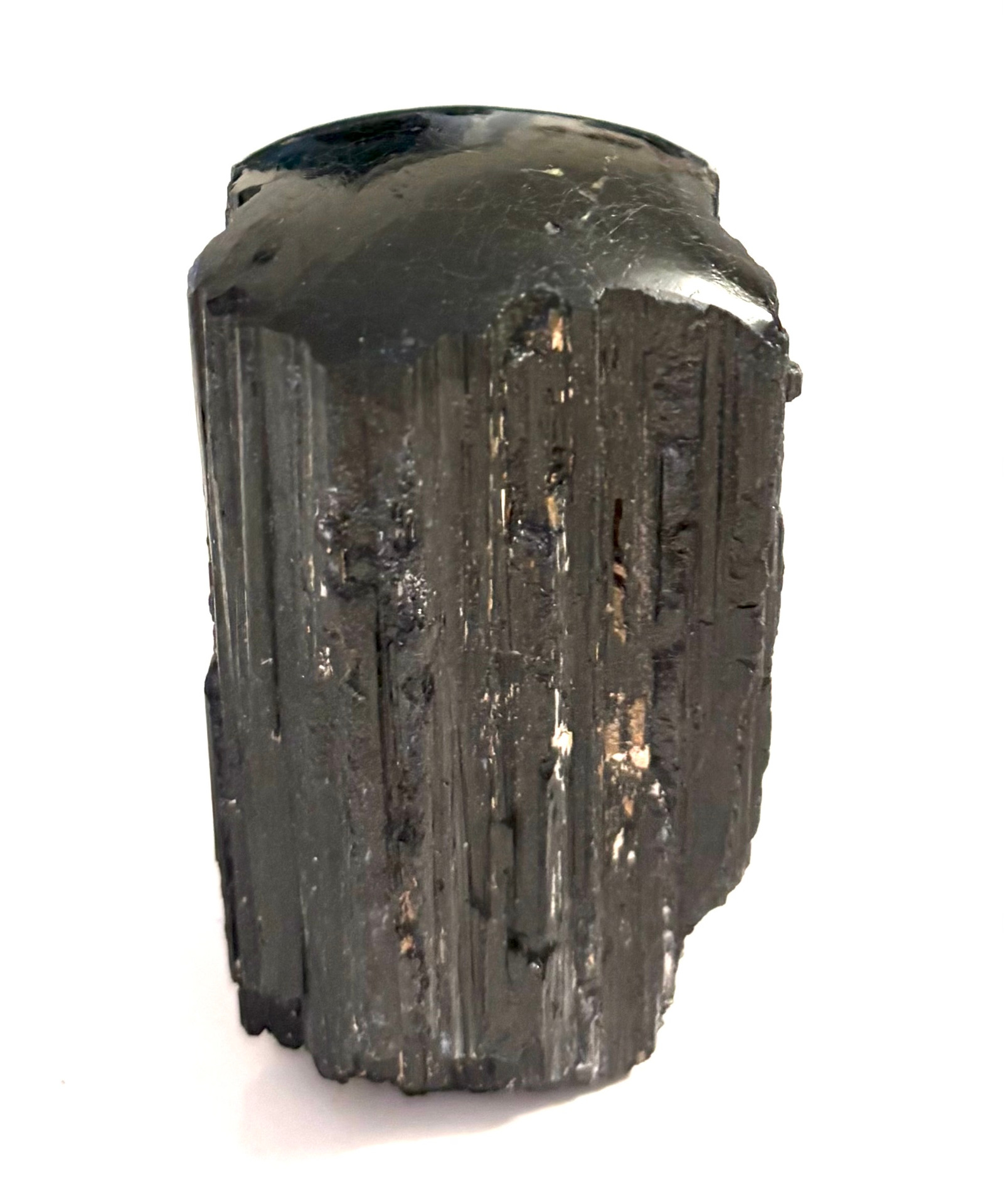 Schwarzer Turmalin, mit Standfläche und polierter Fläche