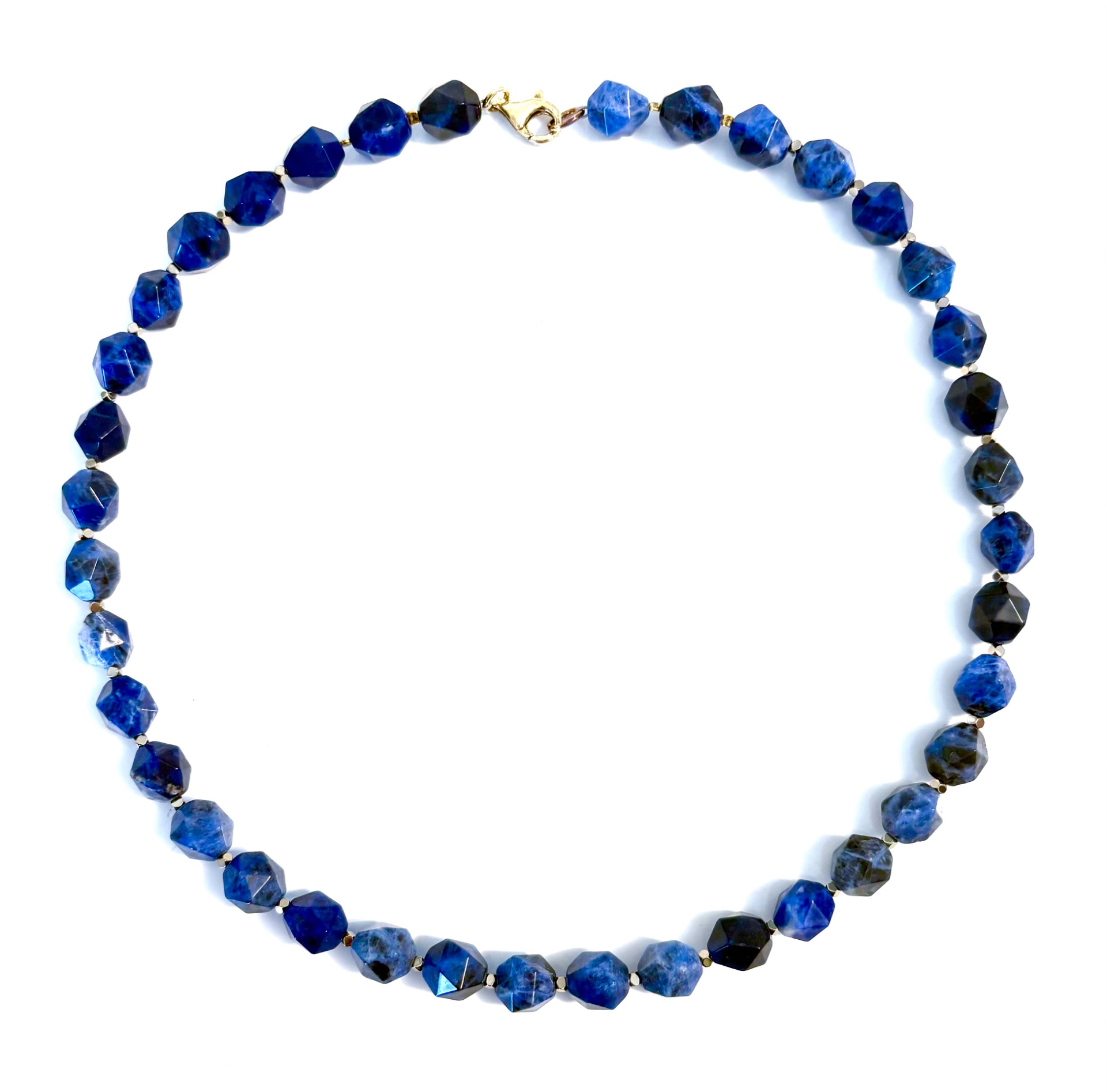 Sodalith - Kette mit Hämatit, facettiert, Karabiner-Schliesse