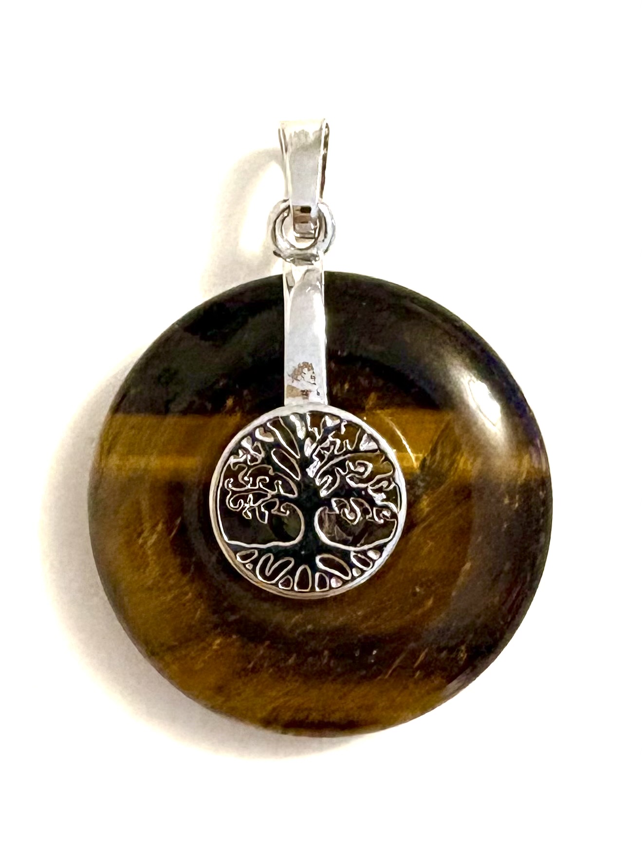 Tigerauge Anhänger, Lebensbaum, silber, 40x30