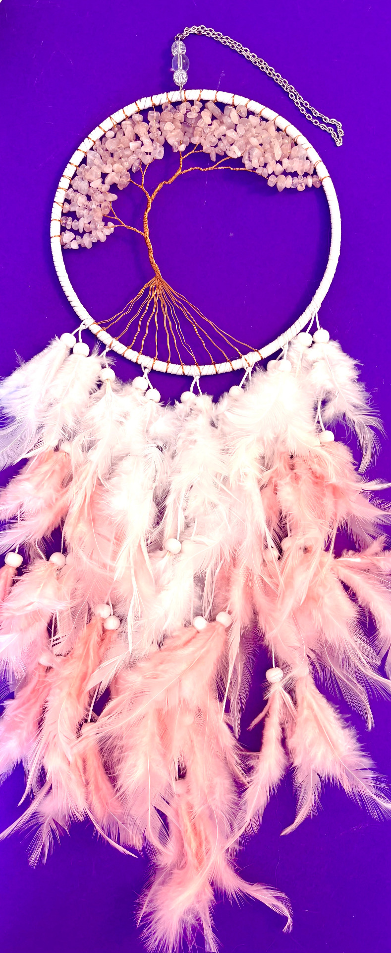 Traumfänger Rosenquarz, Lebensbaum, rosa