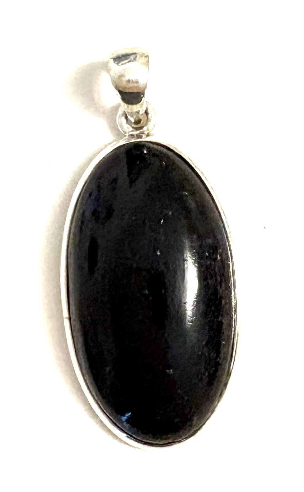 Turmalin Anhänger, schwarz, oval, 925 Sterlingsilber