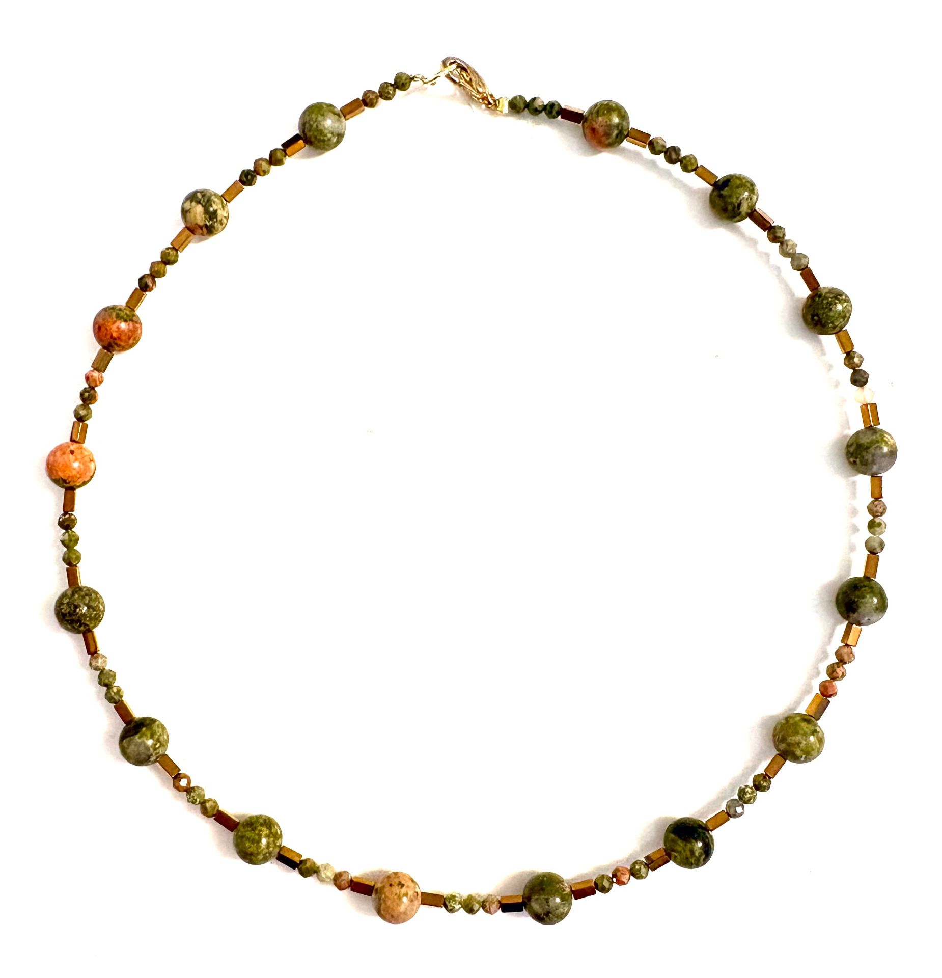 Unakit Kette, facettiert, mit Karabiner-Schließe